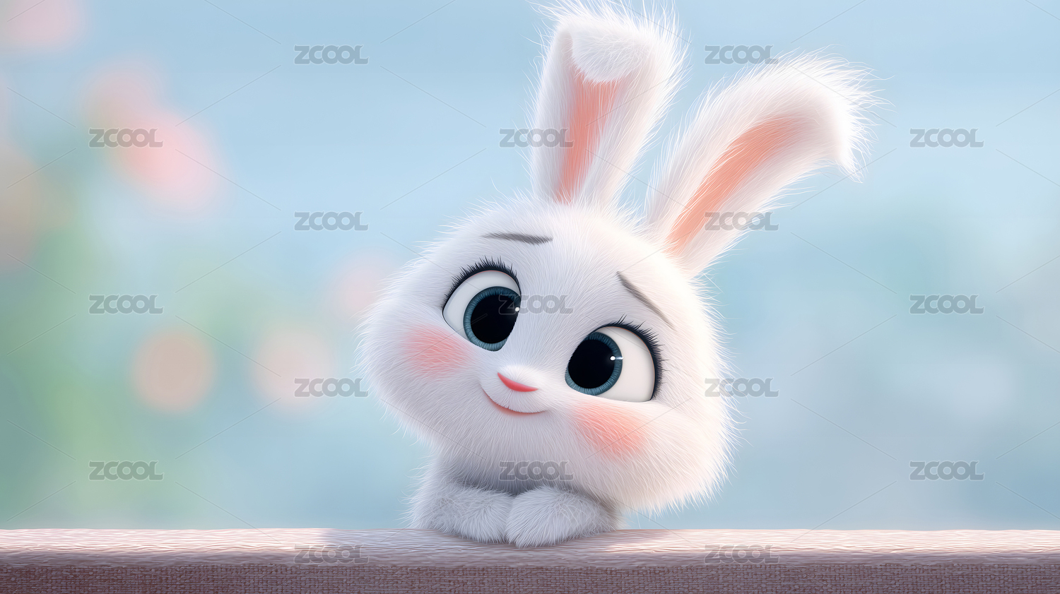 粉色兔子可爱唯美野生动物3D卡通插画壁纸