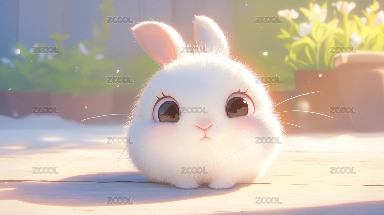 背景,粉色,白色,花朵,可爱,卡通,眼睛,毛茸,兔子,呆萌