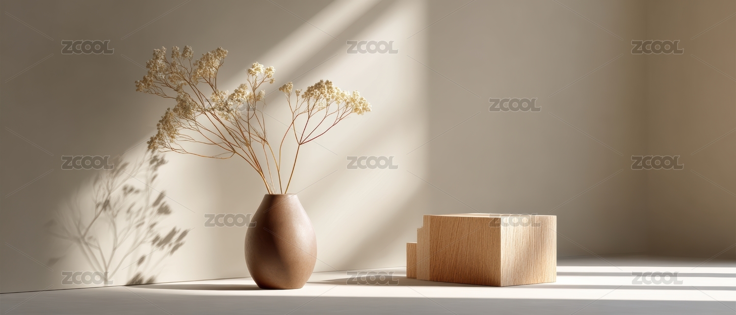 简约木质花瓶与干花的静谧光影