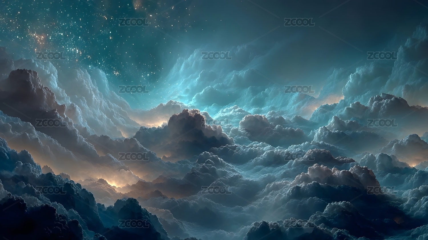 绿色,蓝色,星空,能量,空间,夜空,光点,金色,云,光亮