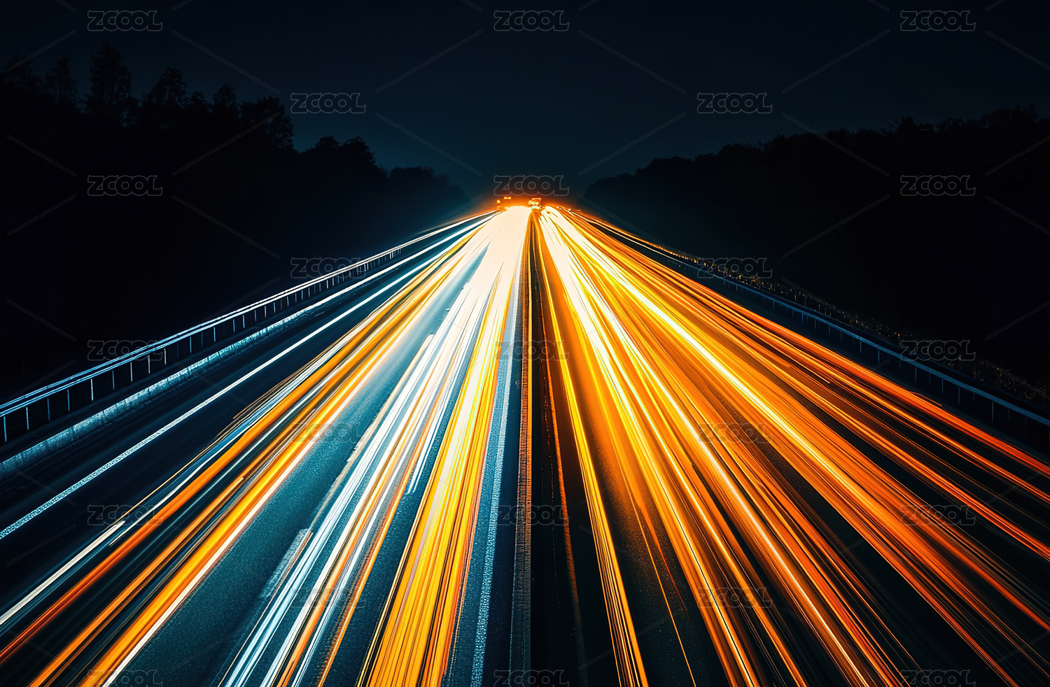 夜间高速公路灯光小道