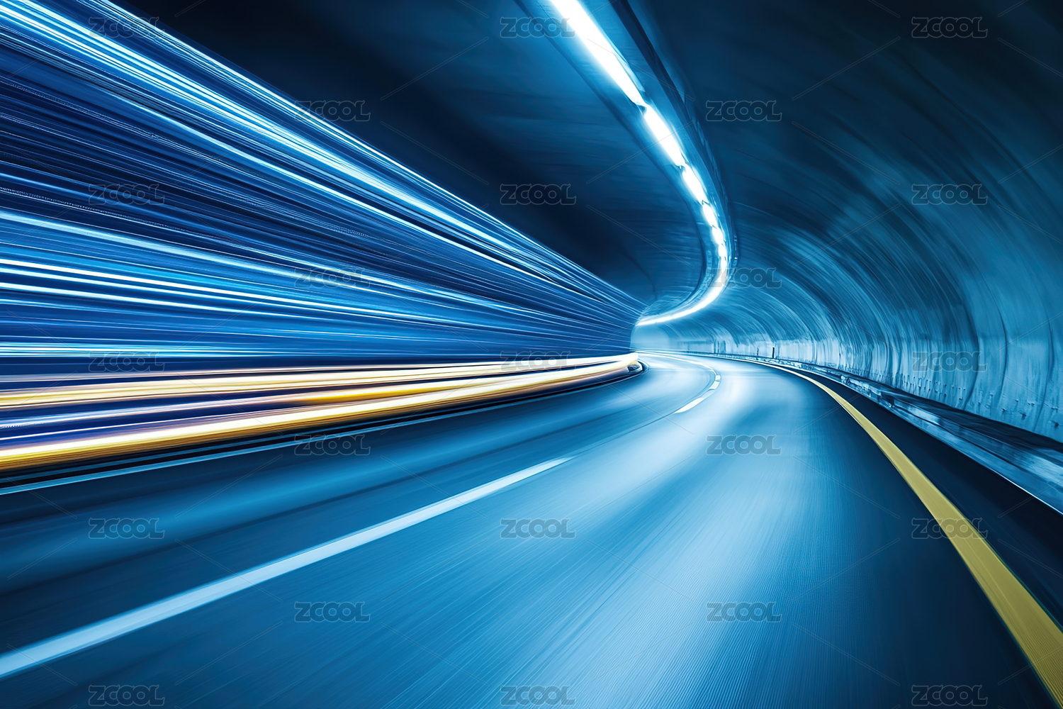 夜晚繁华都市运动模糊的隧道路面