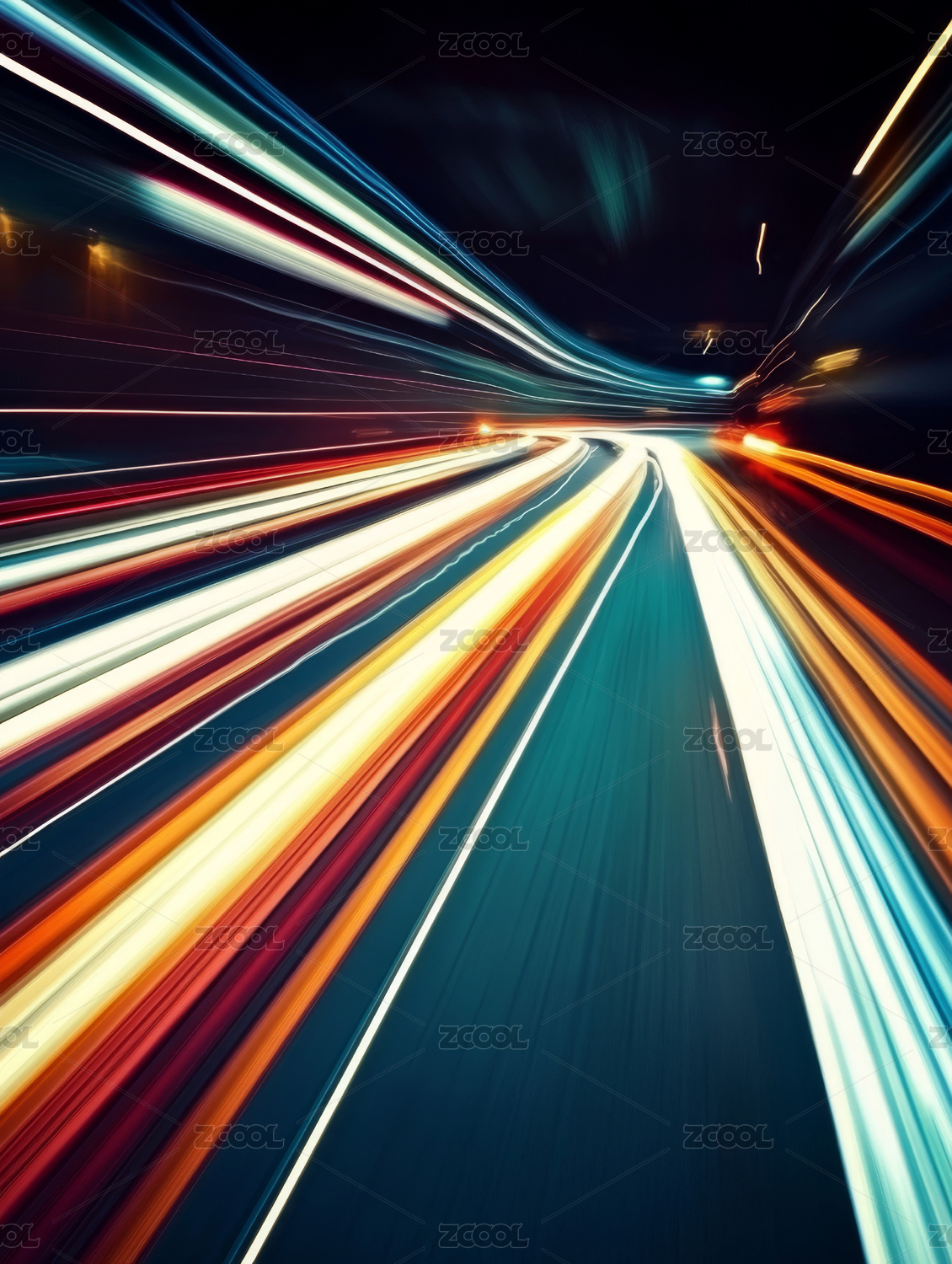 夜间车流光轨城市道路速度感