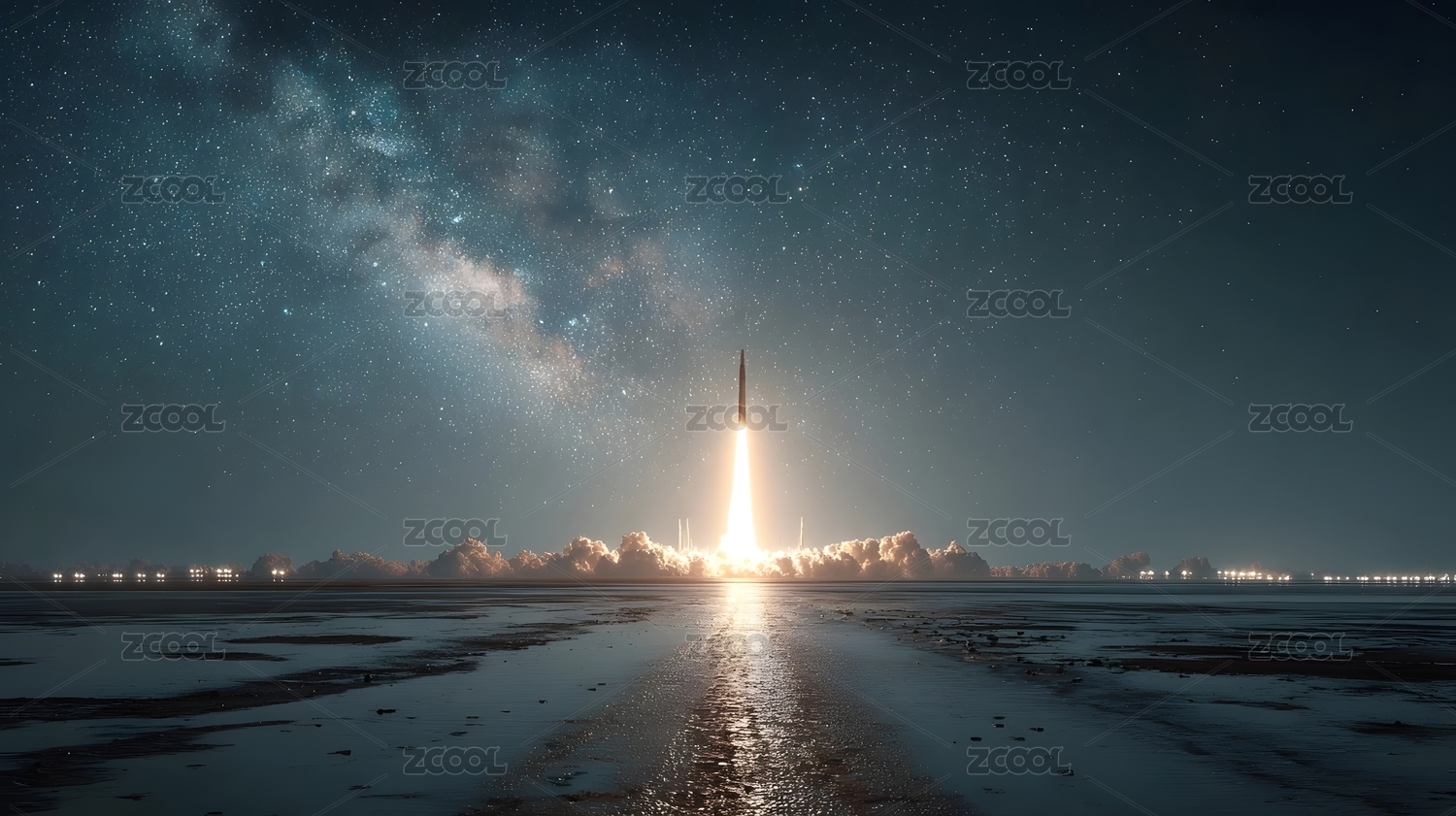 火箭升空夜空星河