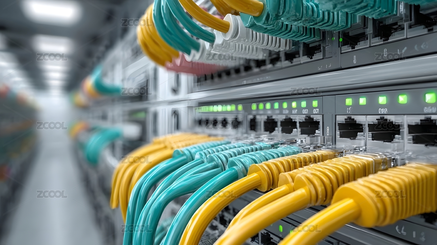 网络交换机彩色网线连接