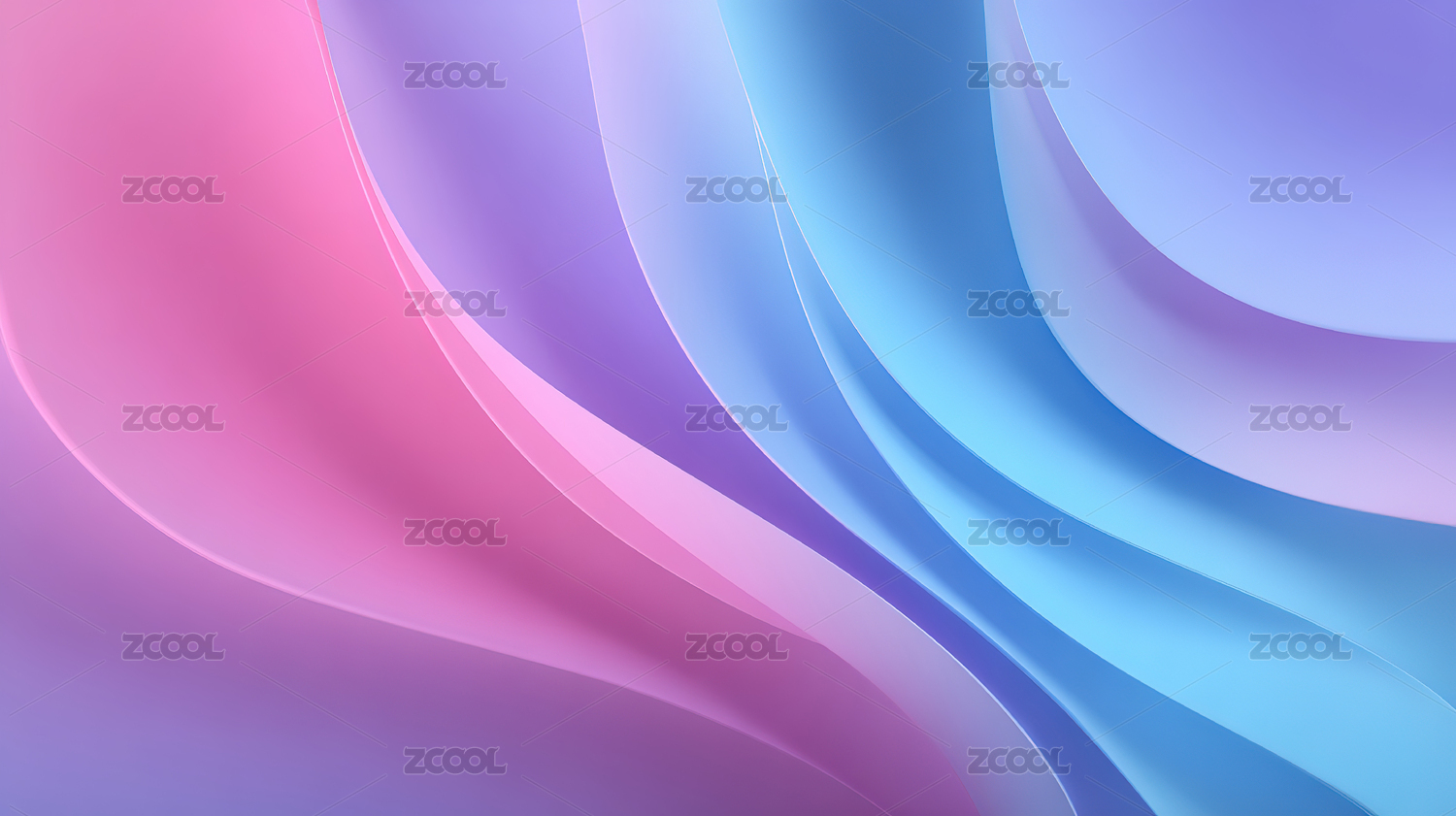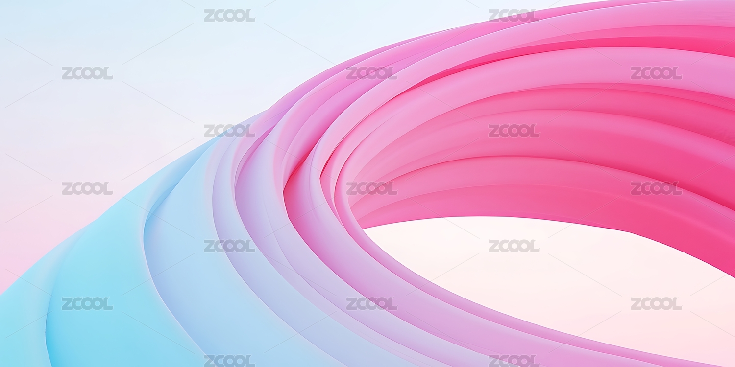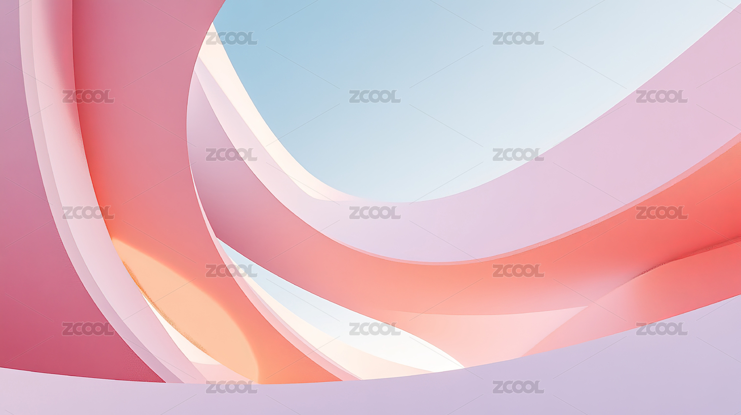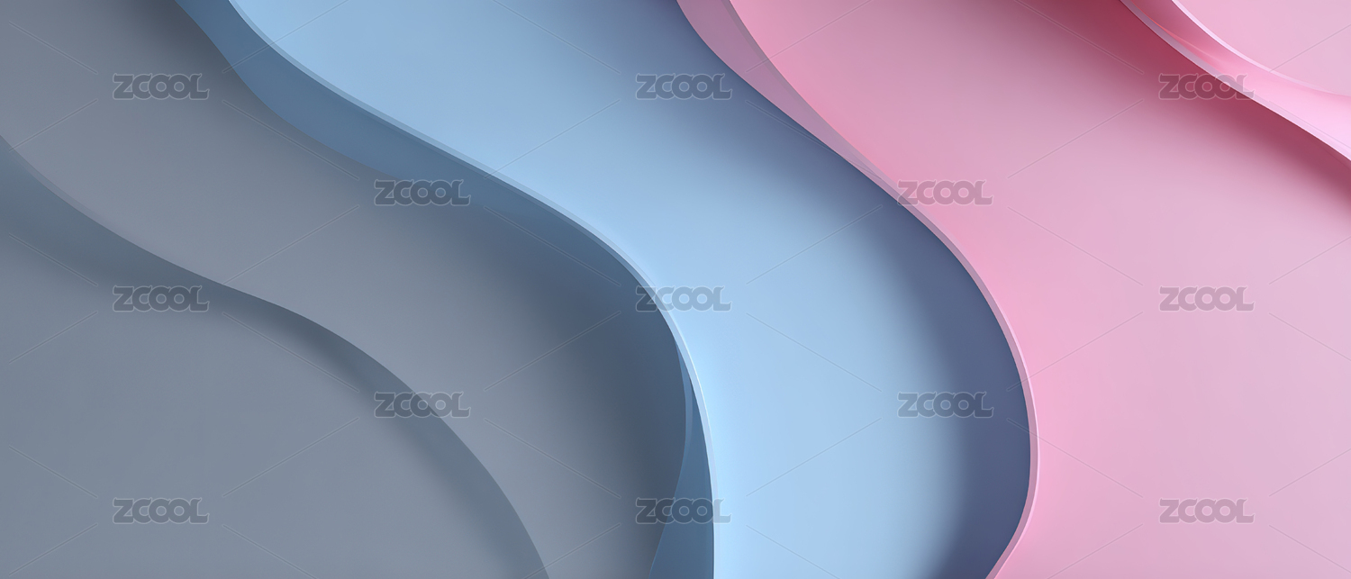 由多张蓝色粉色卡纸剪裁而形成的抽象海浪与沙滩图形