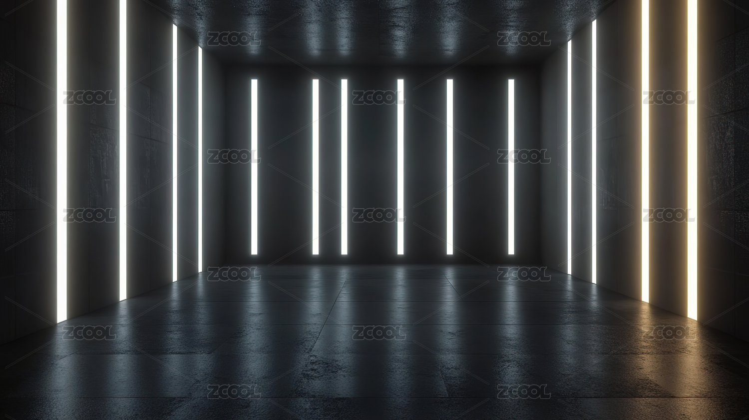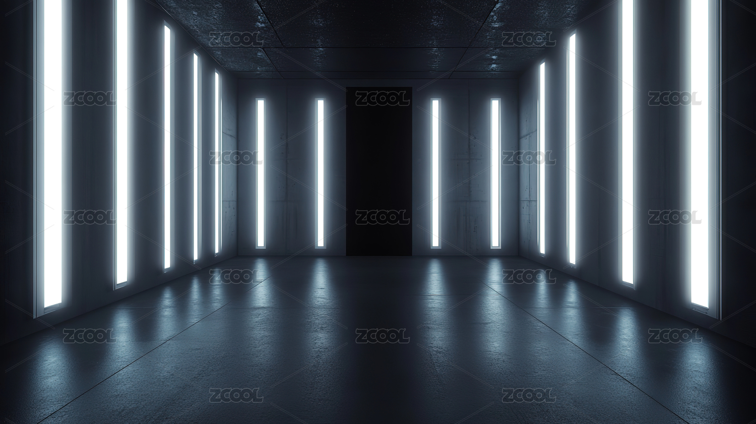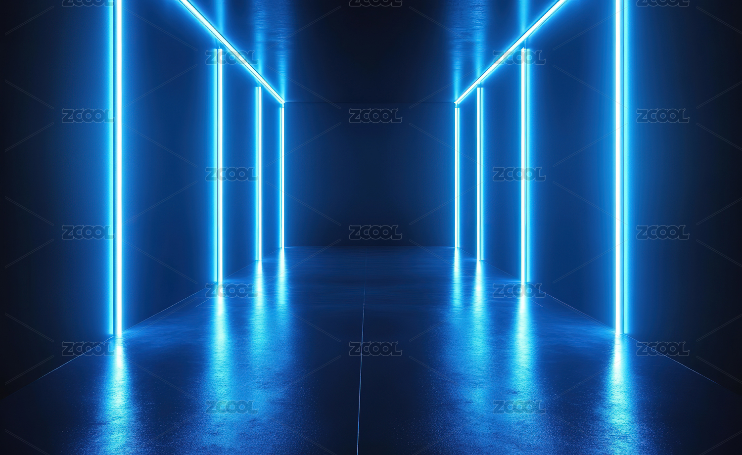 蓝色霓虹灯柱的现代空旷空间
