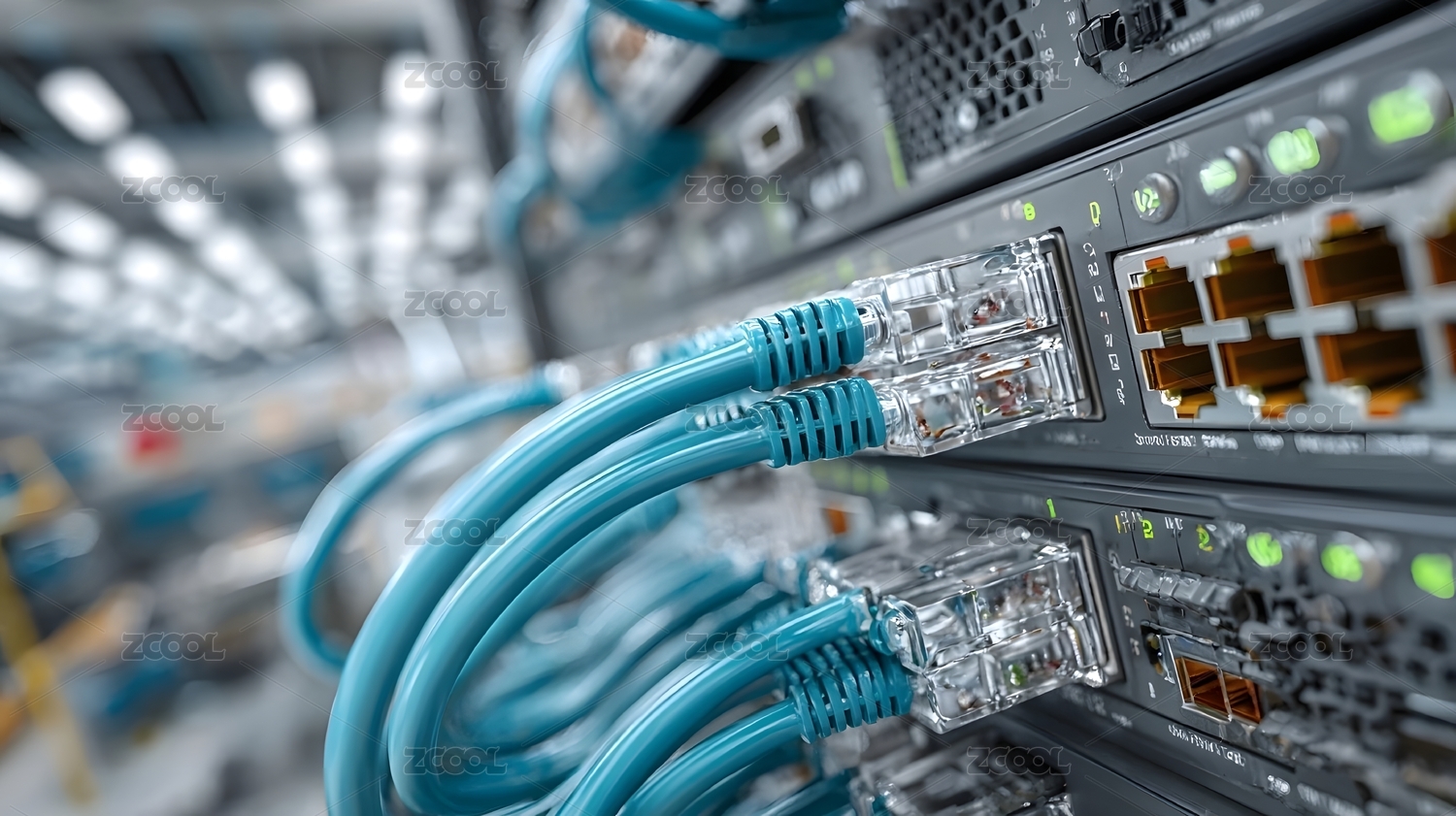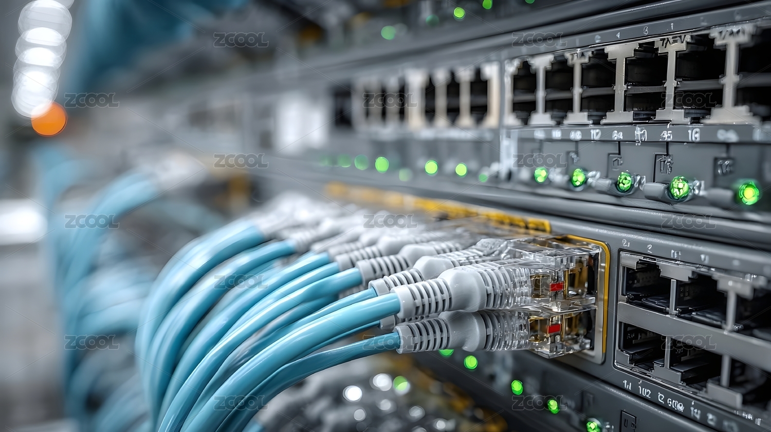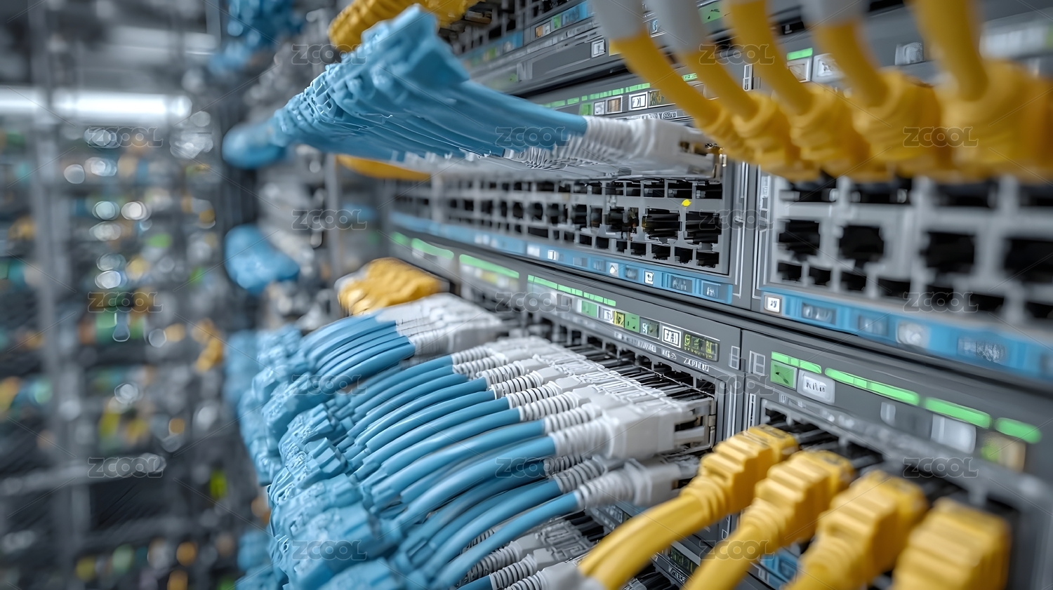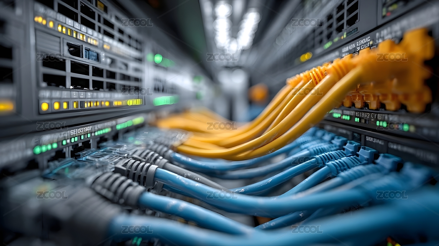 科技,蓝色,黄色,连接,设备,数据,接口,网络,网线,机柜