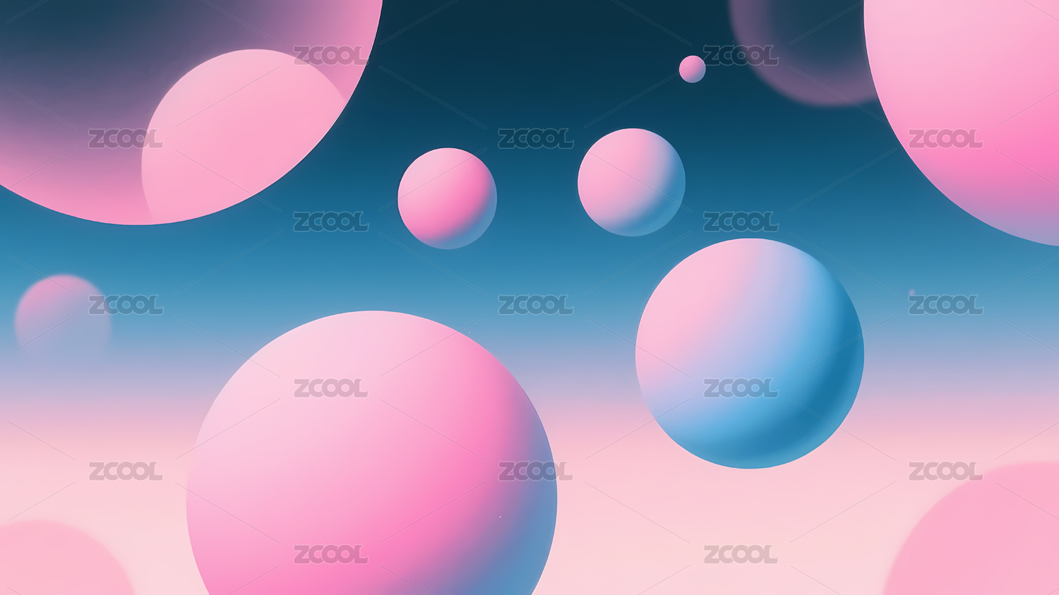 渐变色彩中的悬浮球体