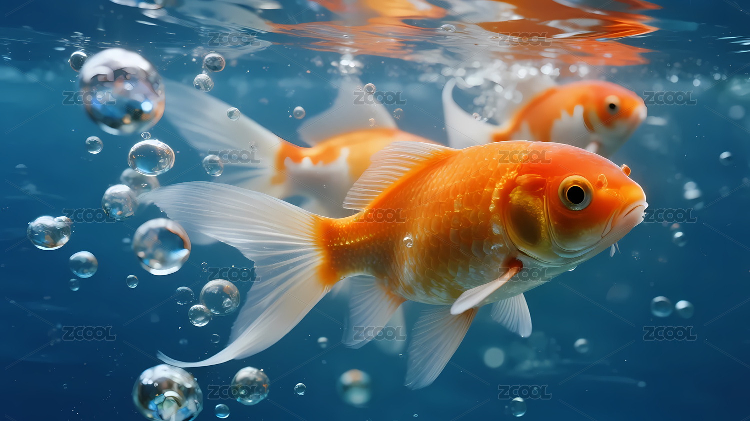 小金鱼,吐泡泡,红顶,水里,可爱,红色,灵动,活泼,特写,清新