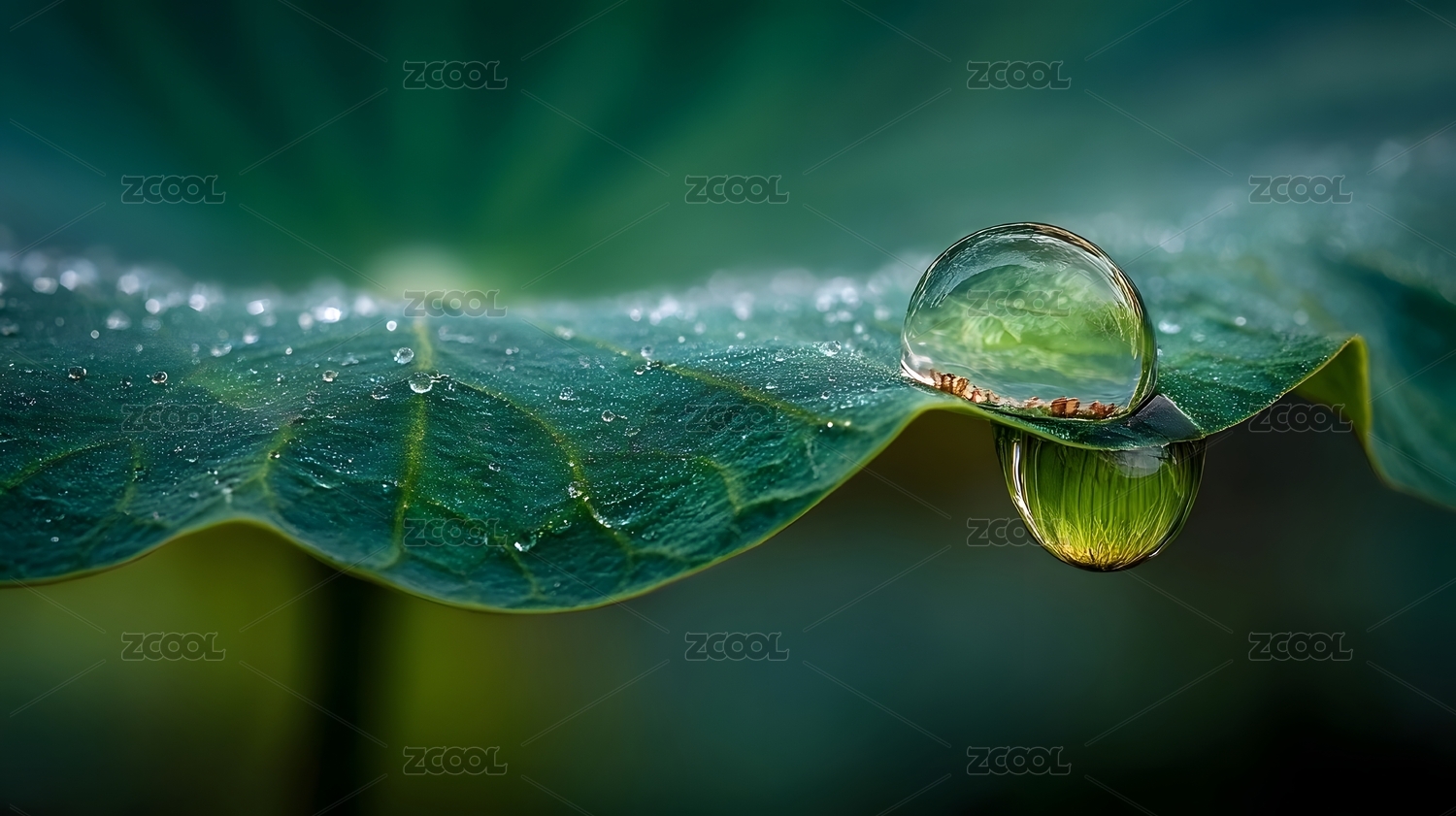 荷叶水滴特写微观