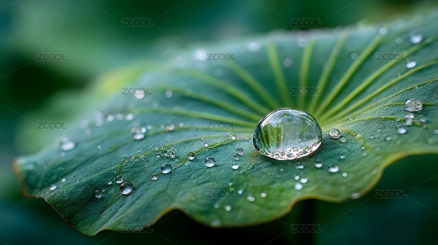 荷叶上的水珠特写