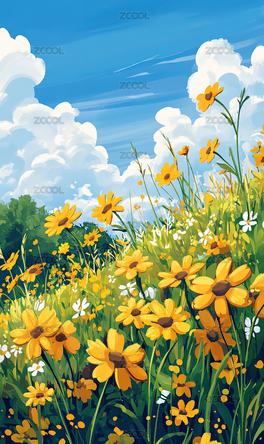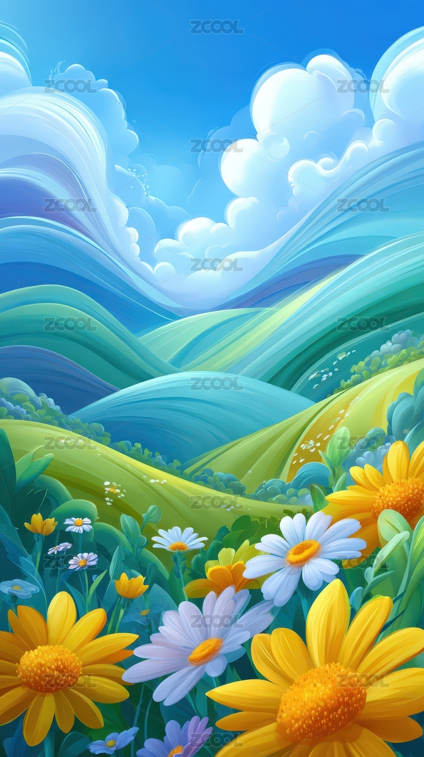 梦幻花海与云朵