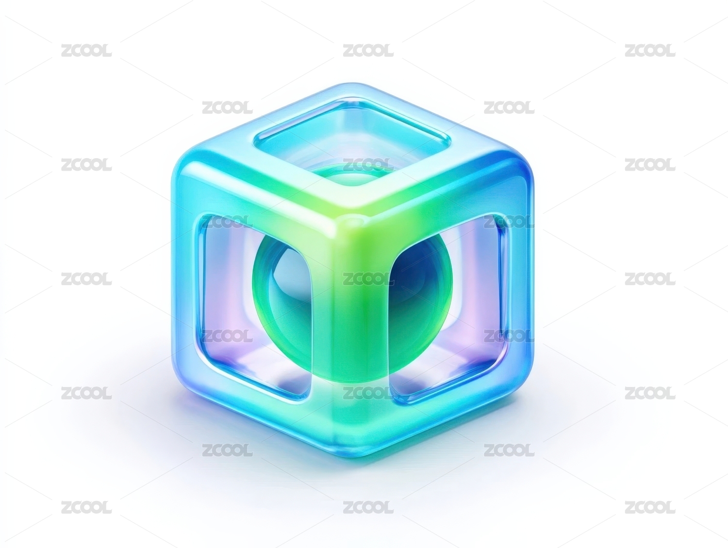 立方体,绿色,蓝色,几何,形状,设计,现代,质感,科技,透明