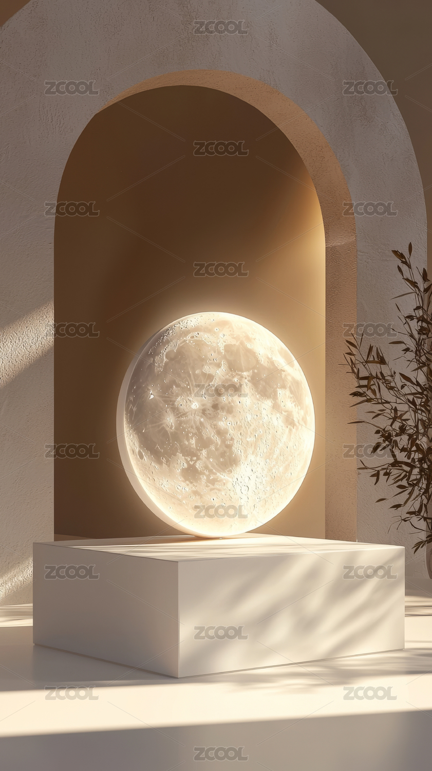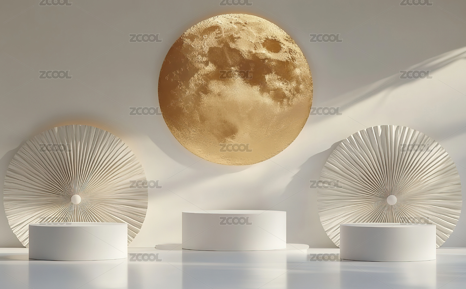 明亮大气极简高端圆月产品展台背景