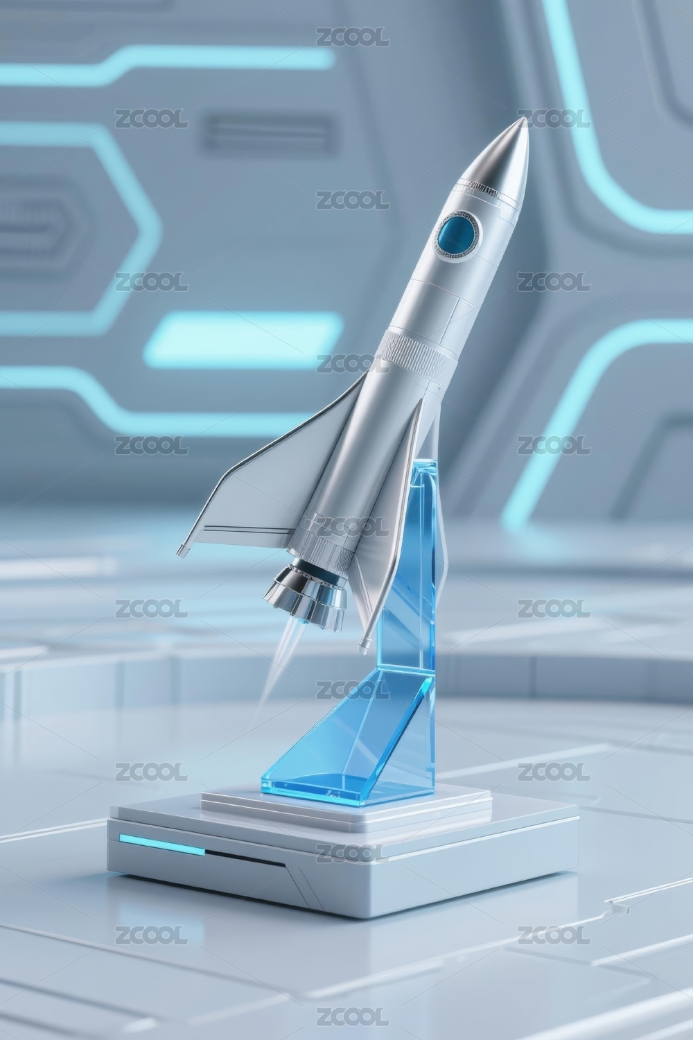 火箭模型蓝白色展示场景