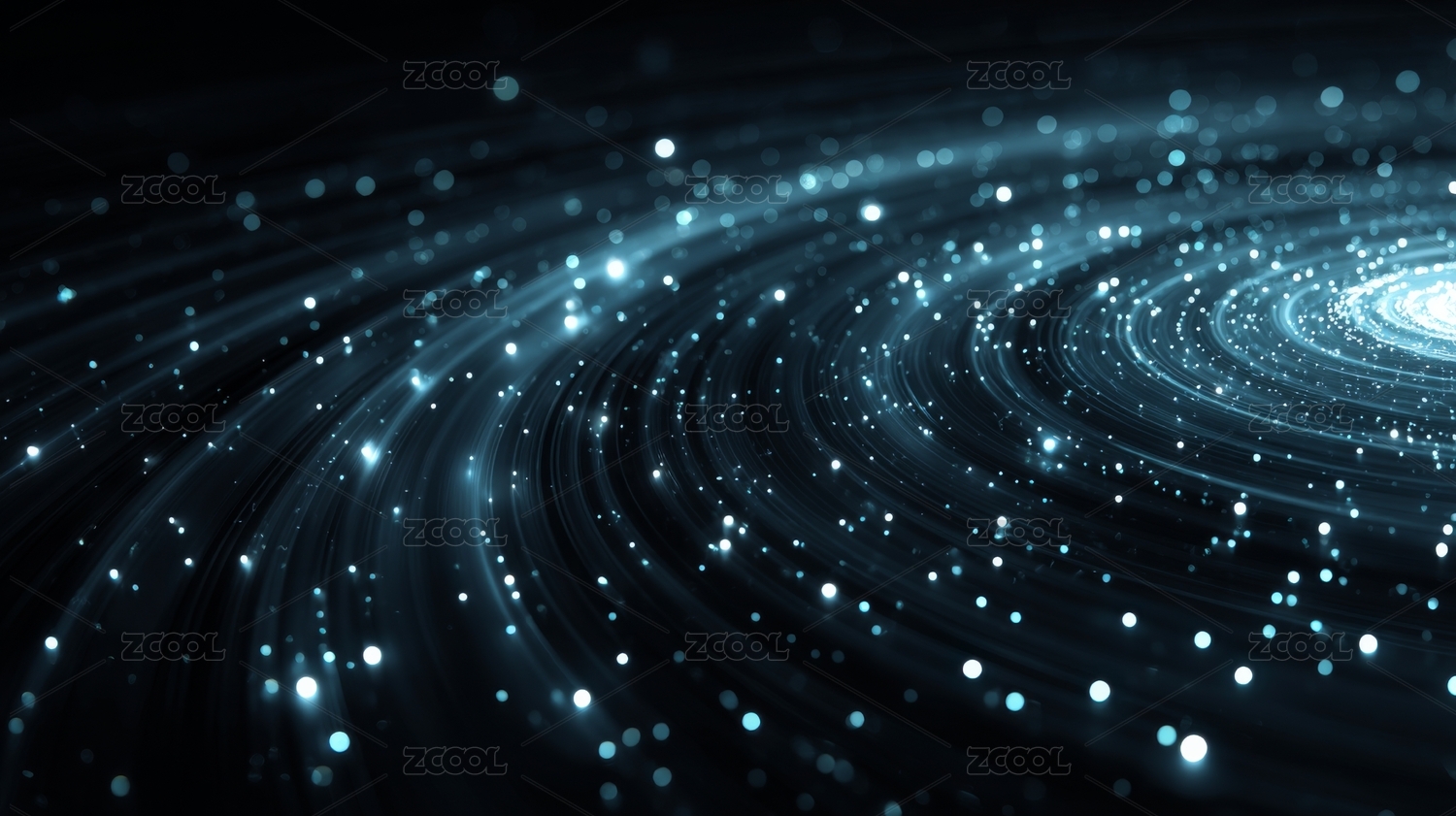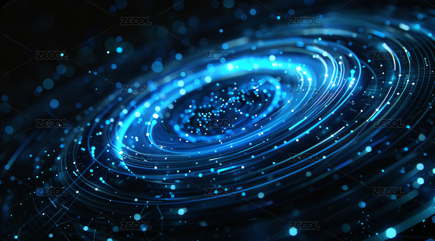 蓝色科技全息抽象霓虹光效粒子光纤圆背景