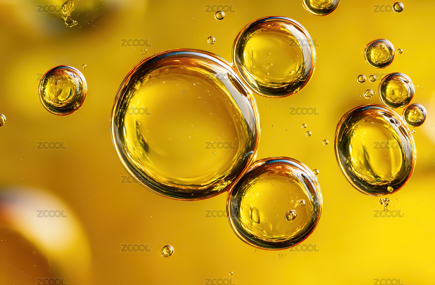 金色液体油滴悬浮特写