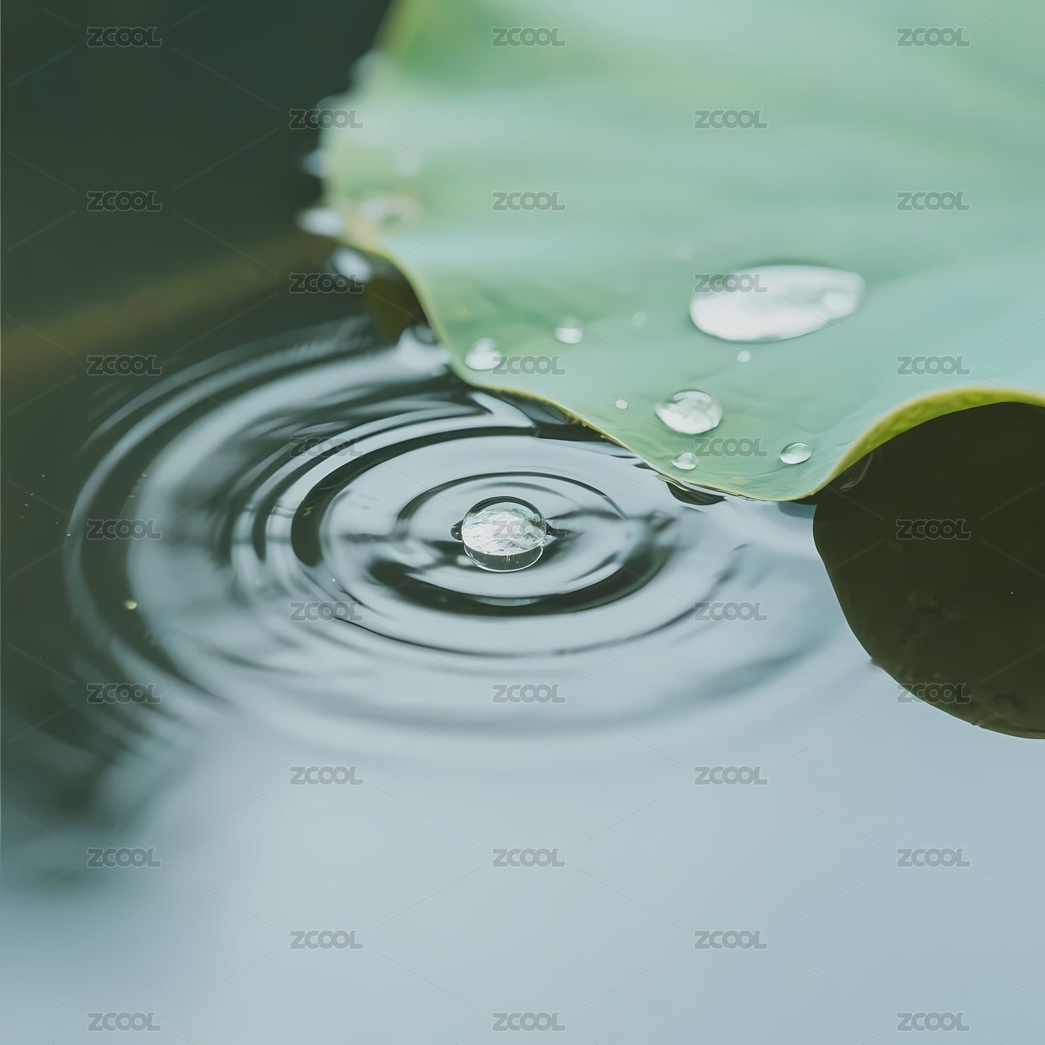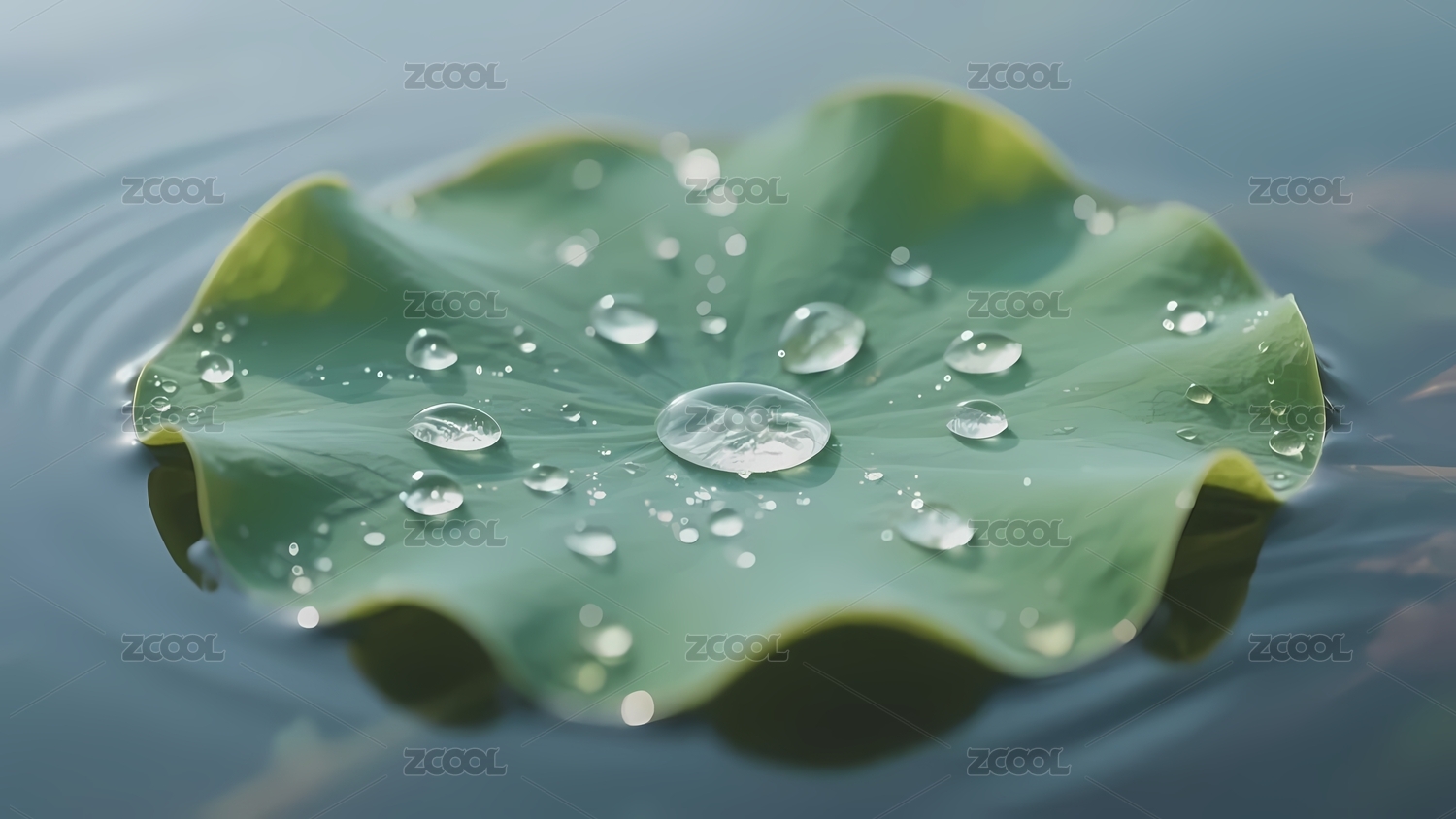 荷叶上的水滴与水面波纹