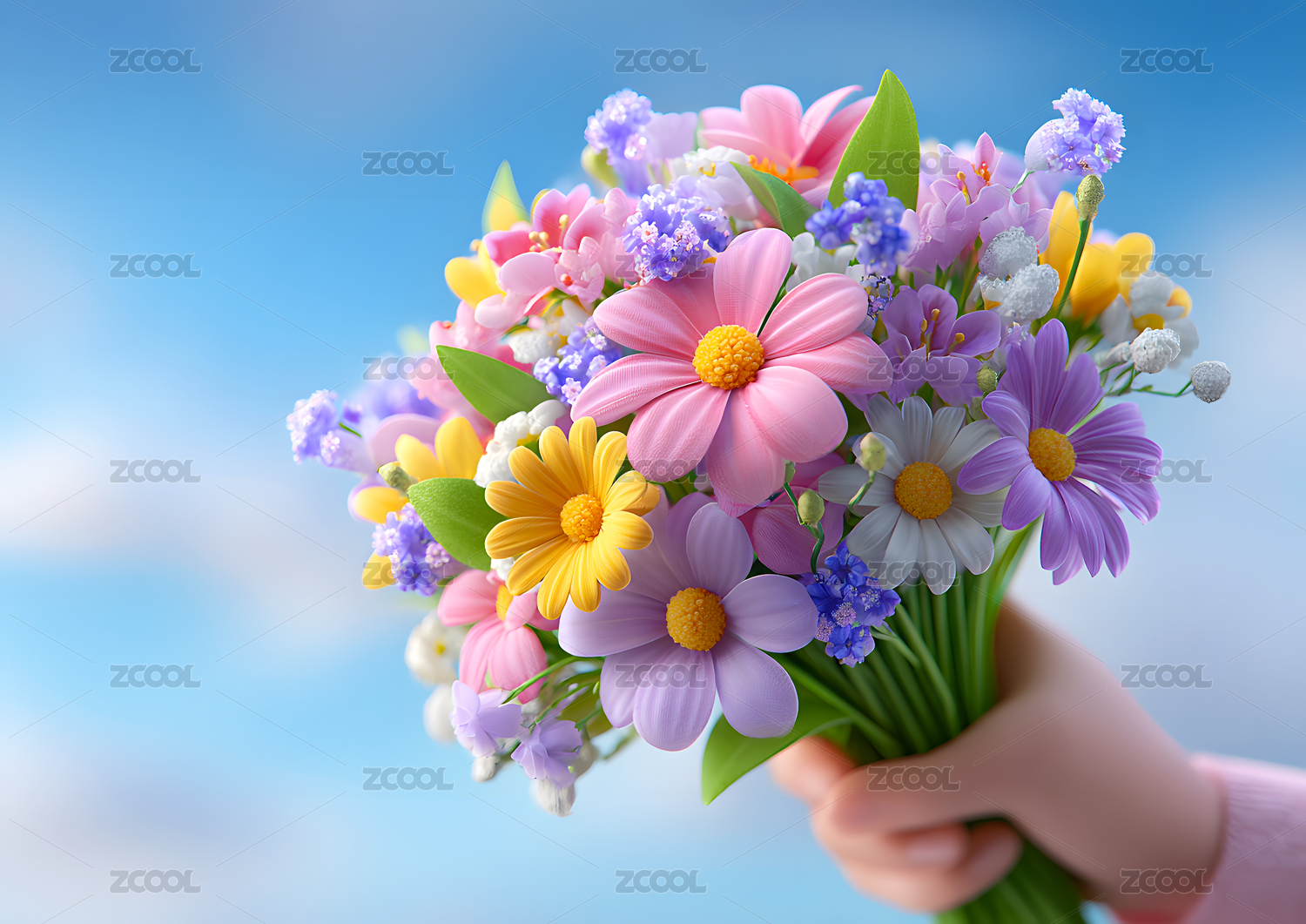 母亲节手握一束康乃馨3D卡通手捧花插画