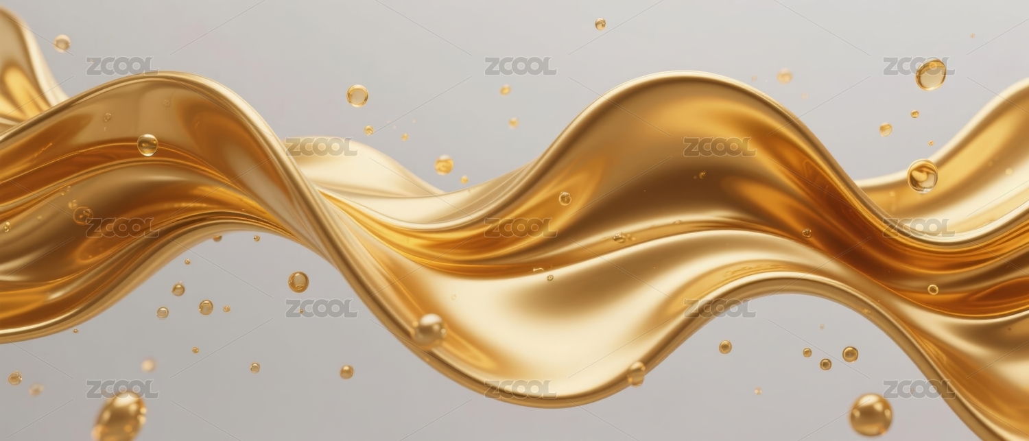 金色液体波浪与水滴