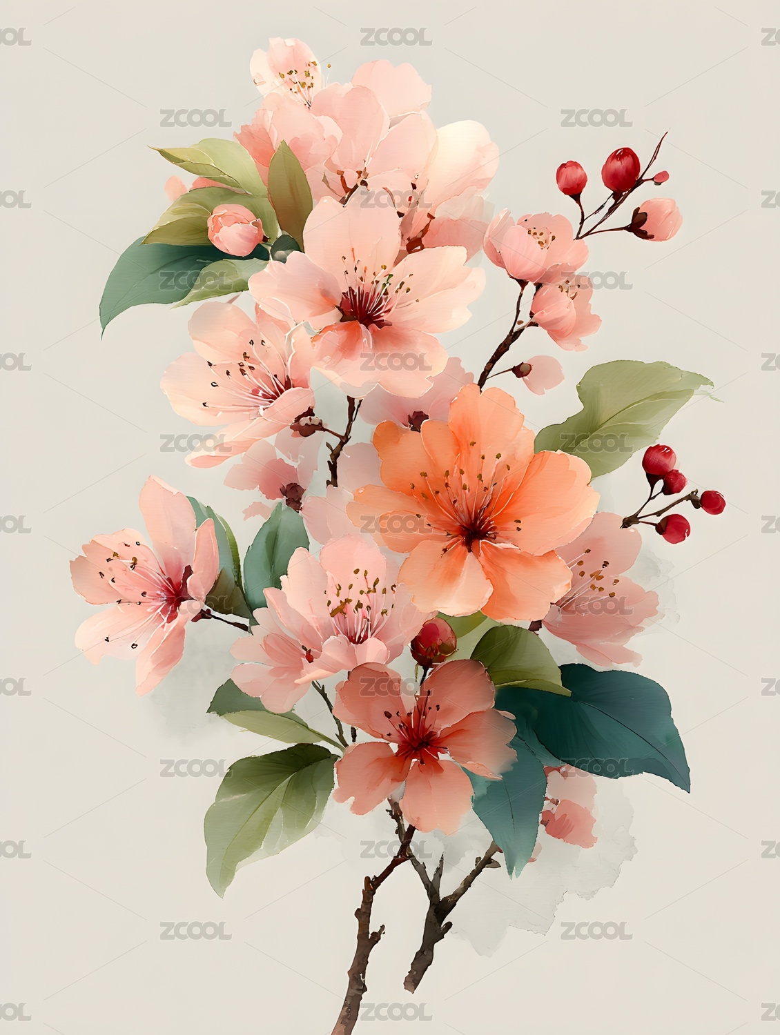 绿色,花朵,叶子,花瓣,粉色,花蕊,枝条,花苞,水滴,盛开