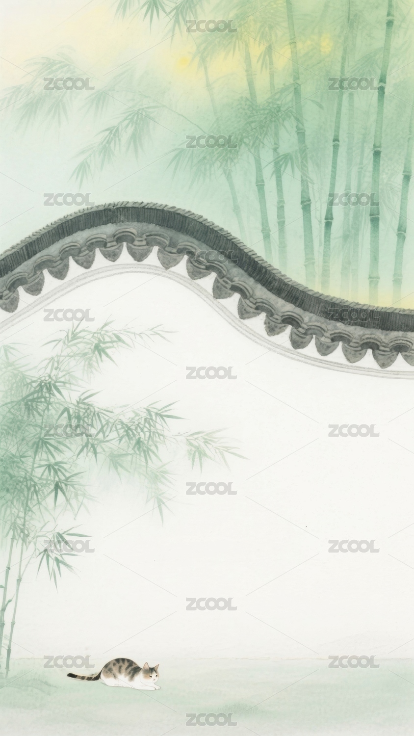 可爱的橘猫趴在屋脊上紫藤花谷雨节气插画
