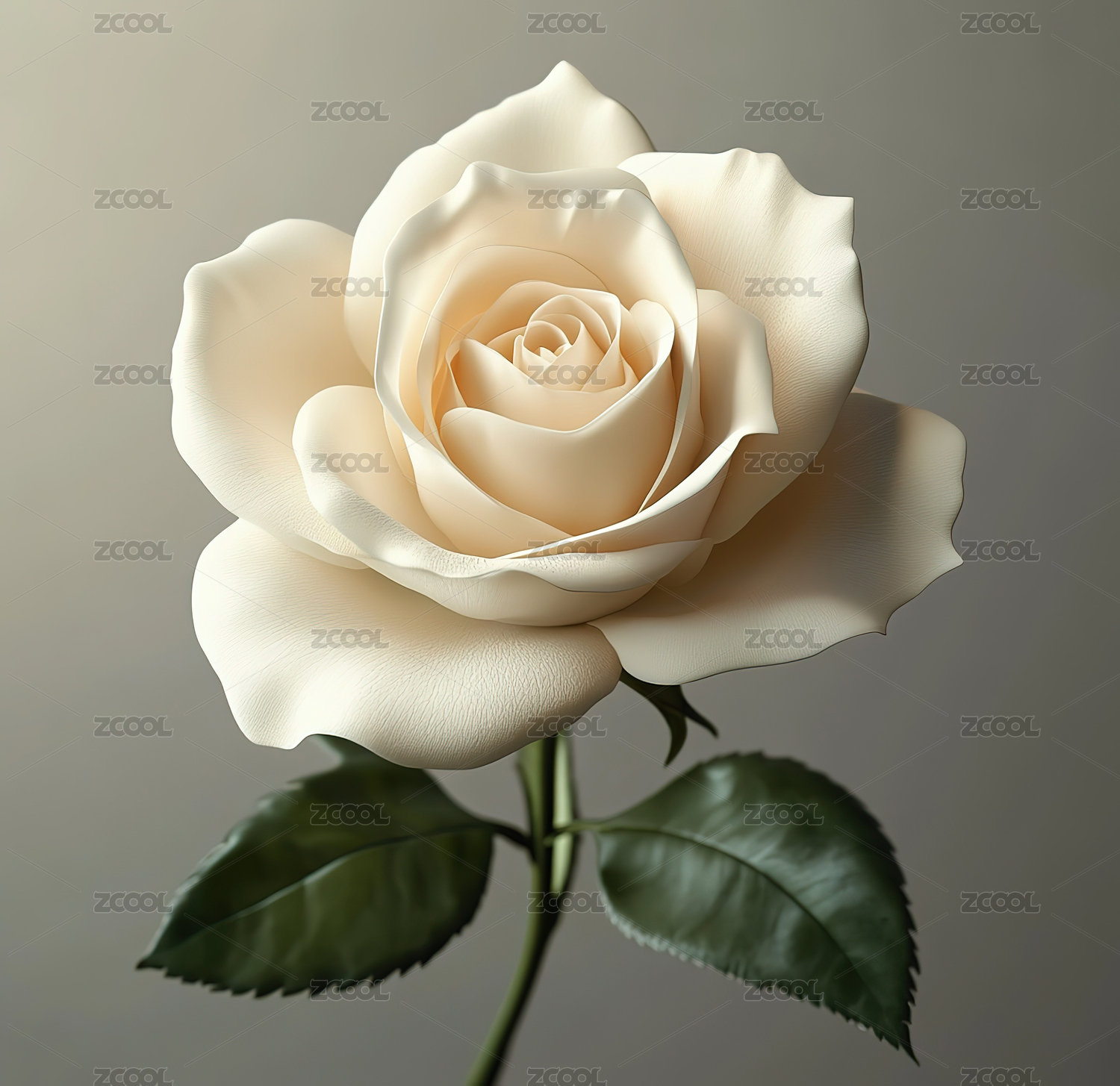 白色背景下的白玫瑰特写镜头