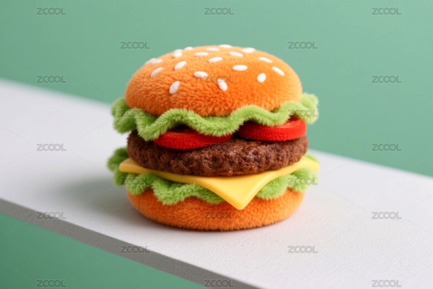 主视觉,商业,壁纸,汉堡,玩偶,可爱风,展示,场景,毛绒,多层