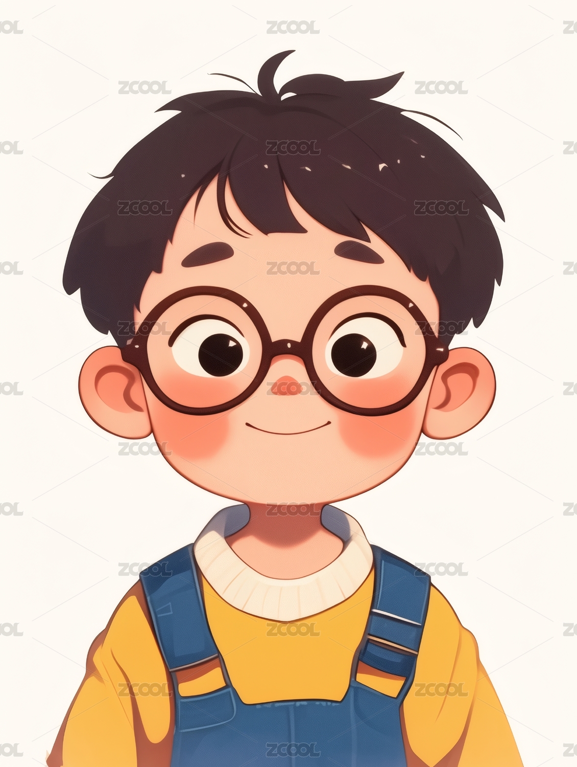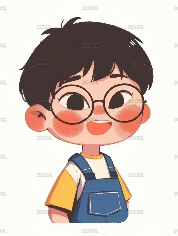 色彩,数字,风格,人物,微笑,圆框,眼镜,腮红,黄衣,蓝裤