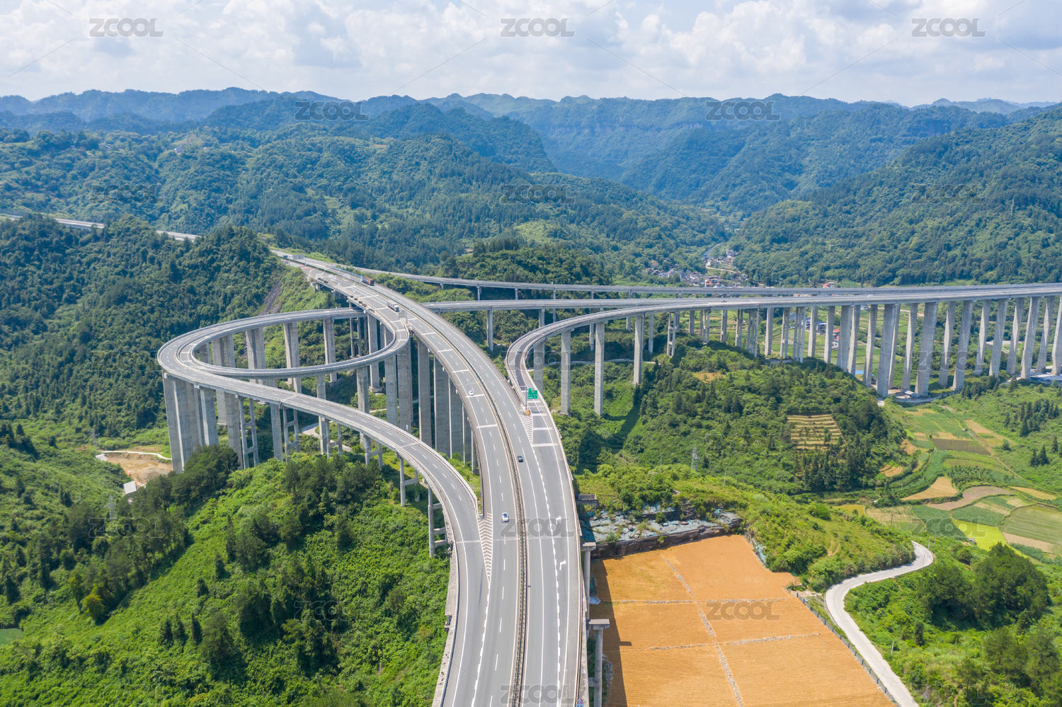 湖南湘西山区的高架高速公路立交桥