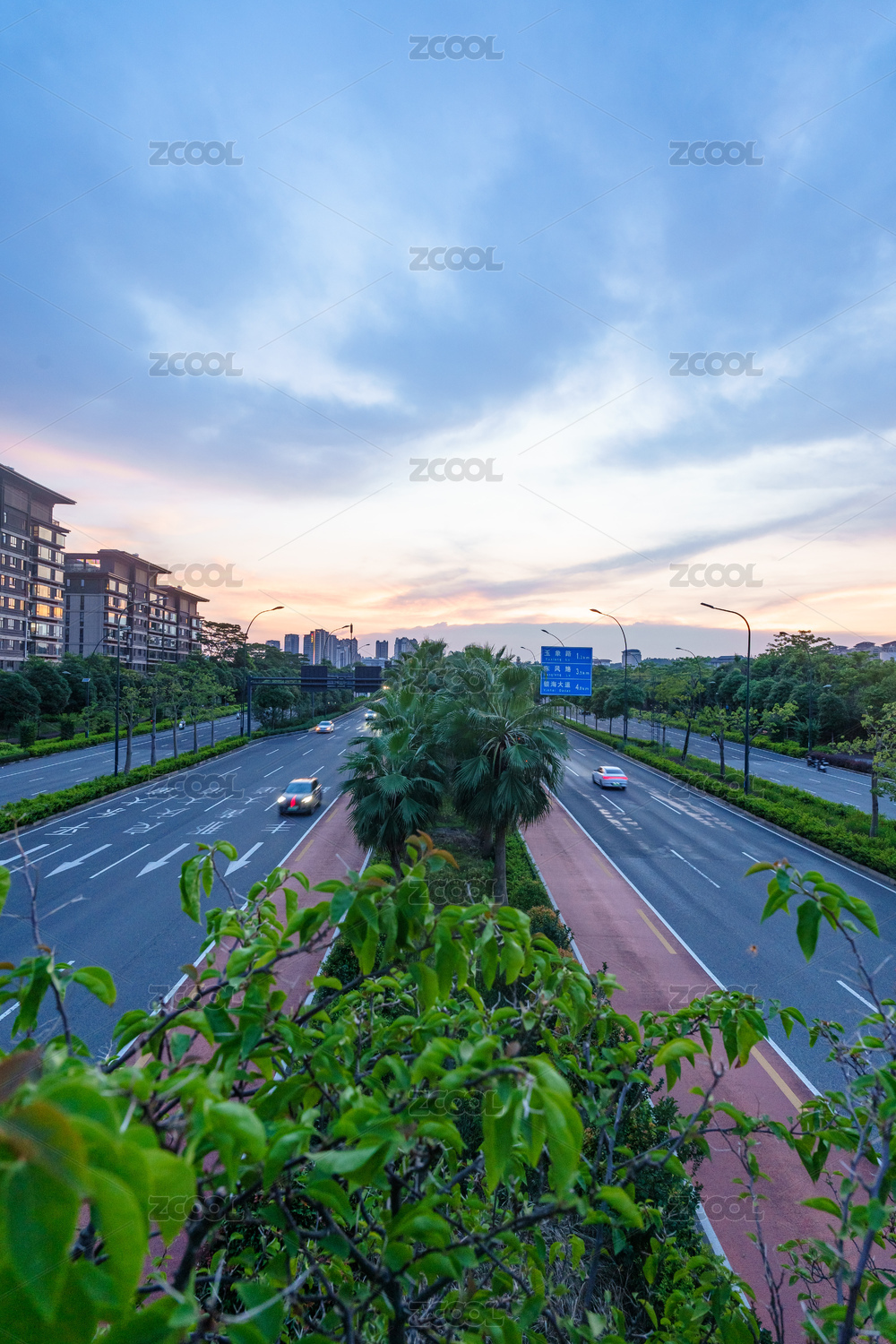 南宁五象新区玉洞大道城市公路晚霞火烧云