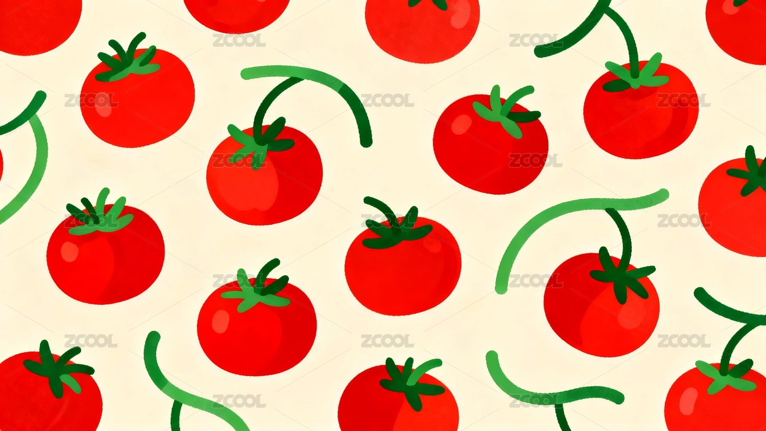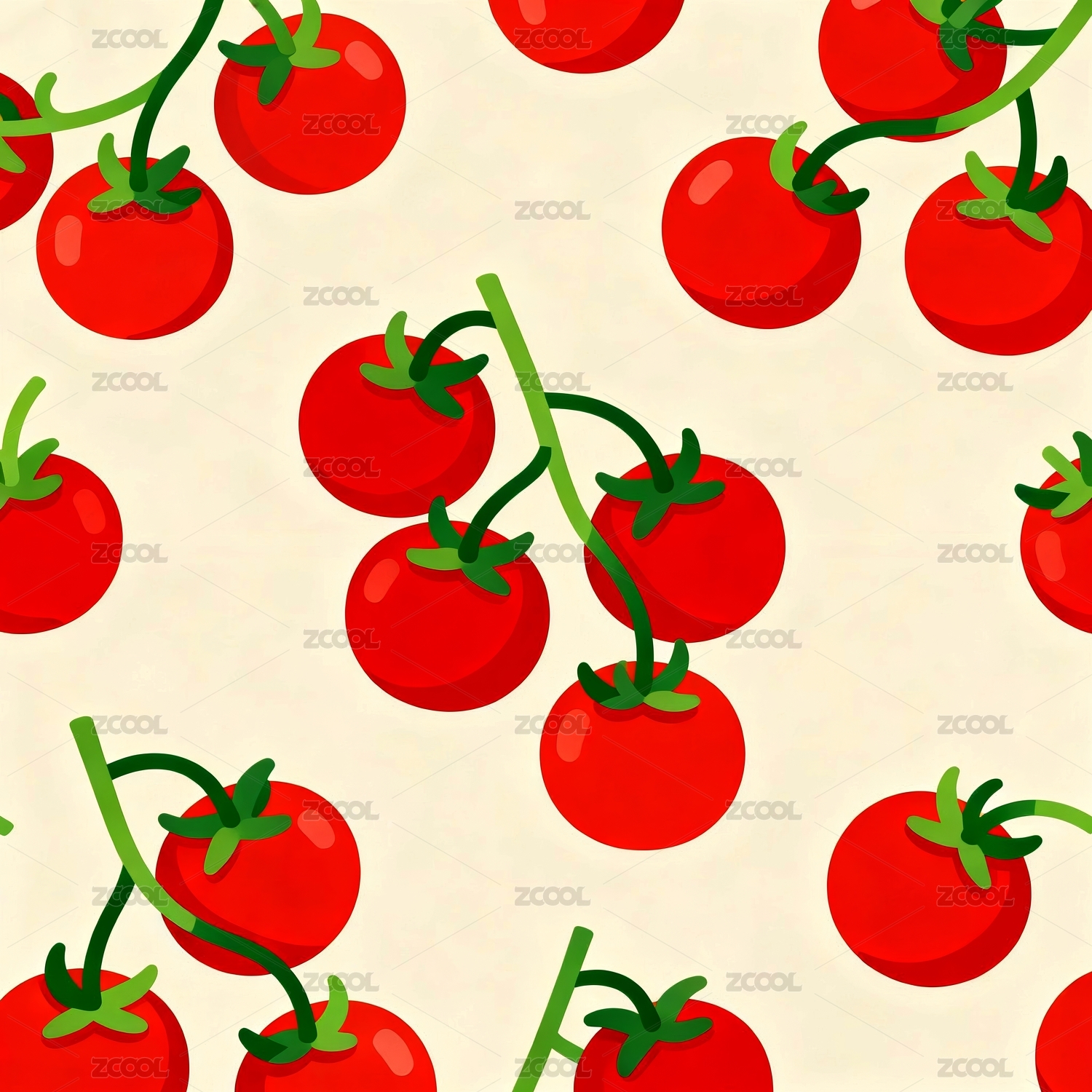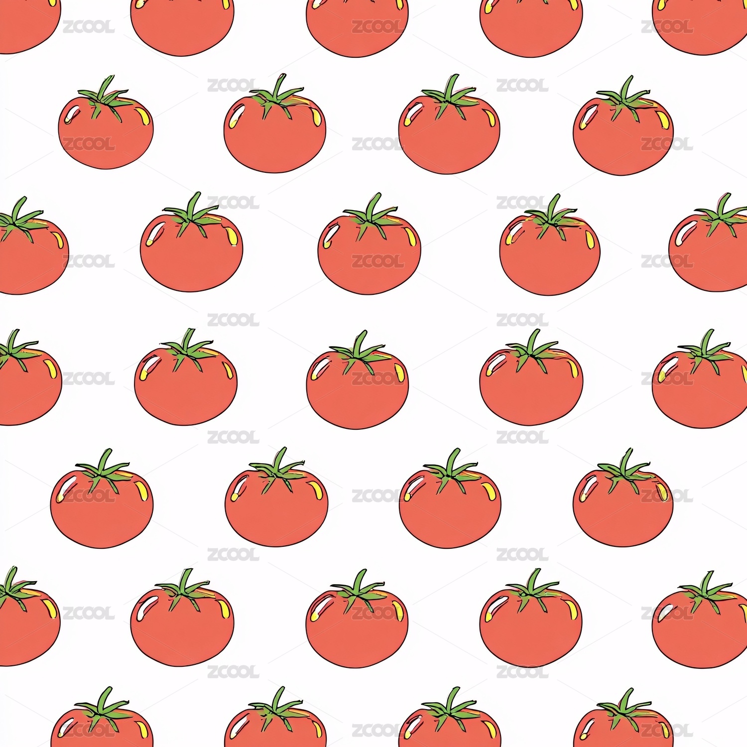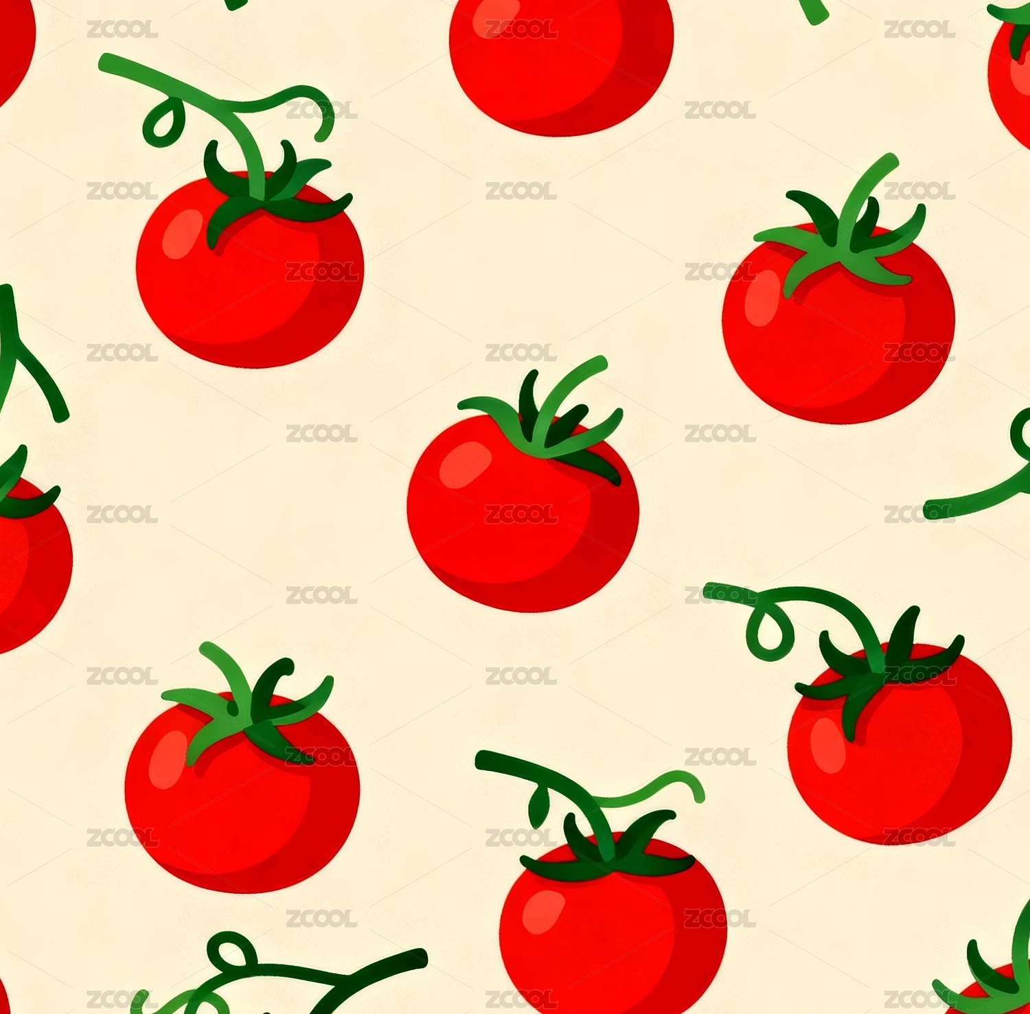 卡通手绘蔬菜番茄无缝拼接印花图案