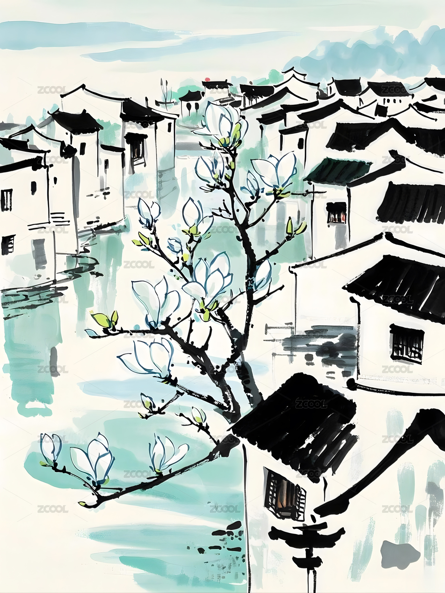 开满玉兰花的江南水乡