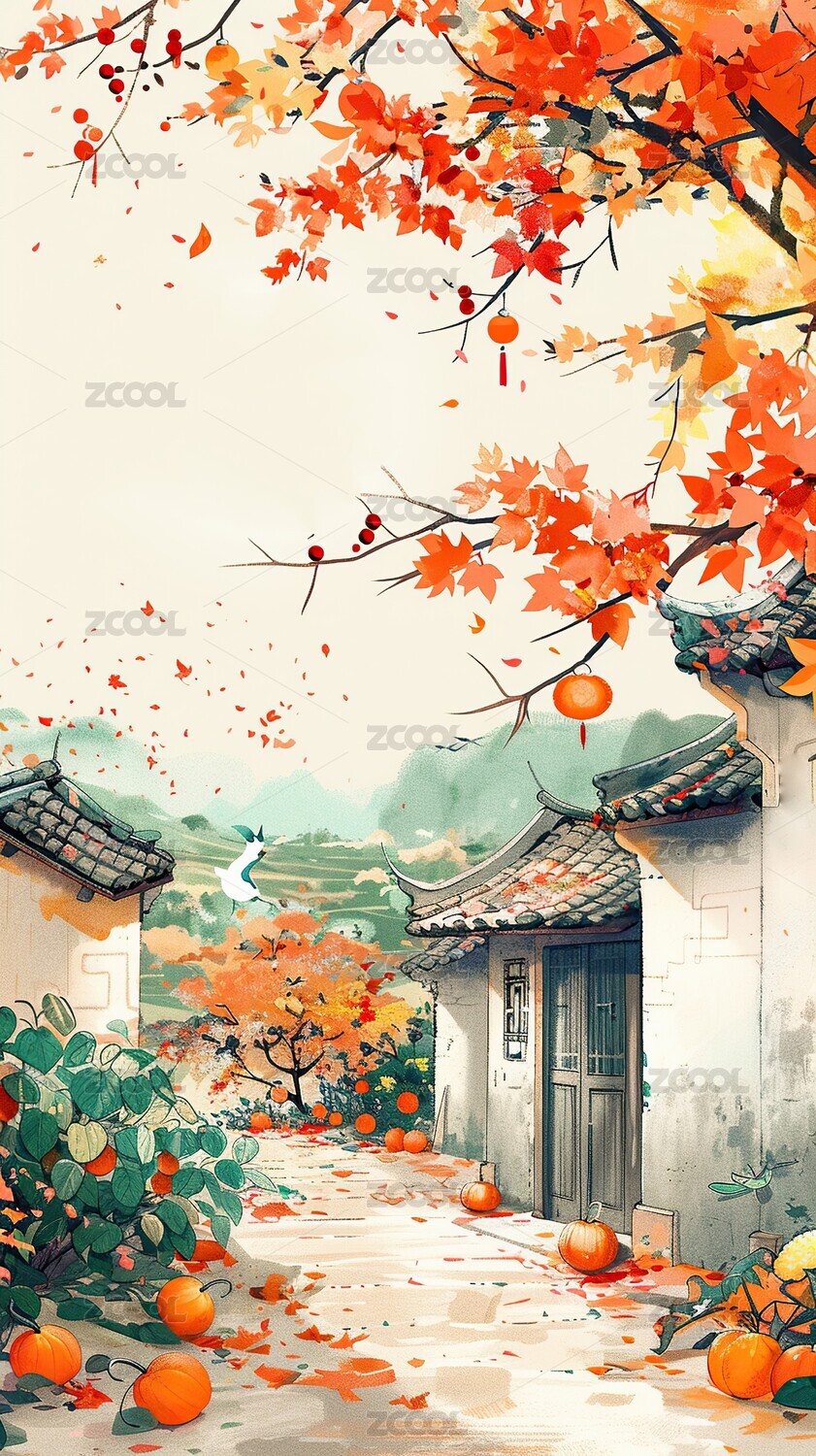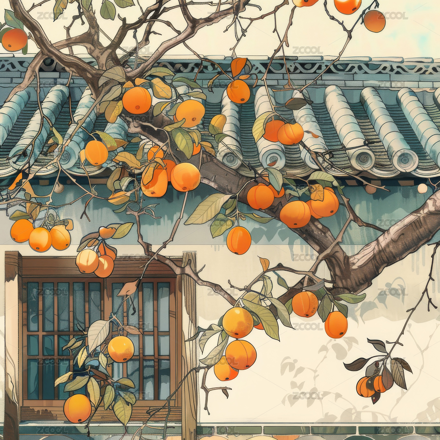 亲子欢乐时光插画橘子树下的温馨母爱的插画