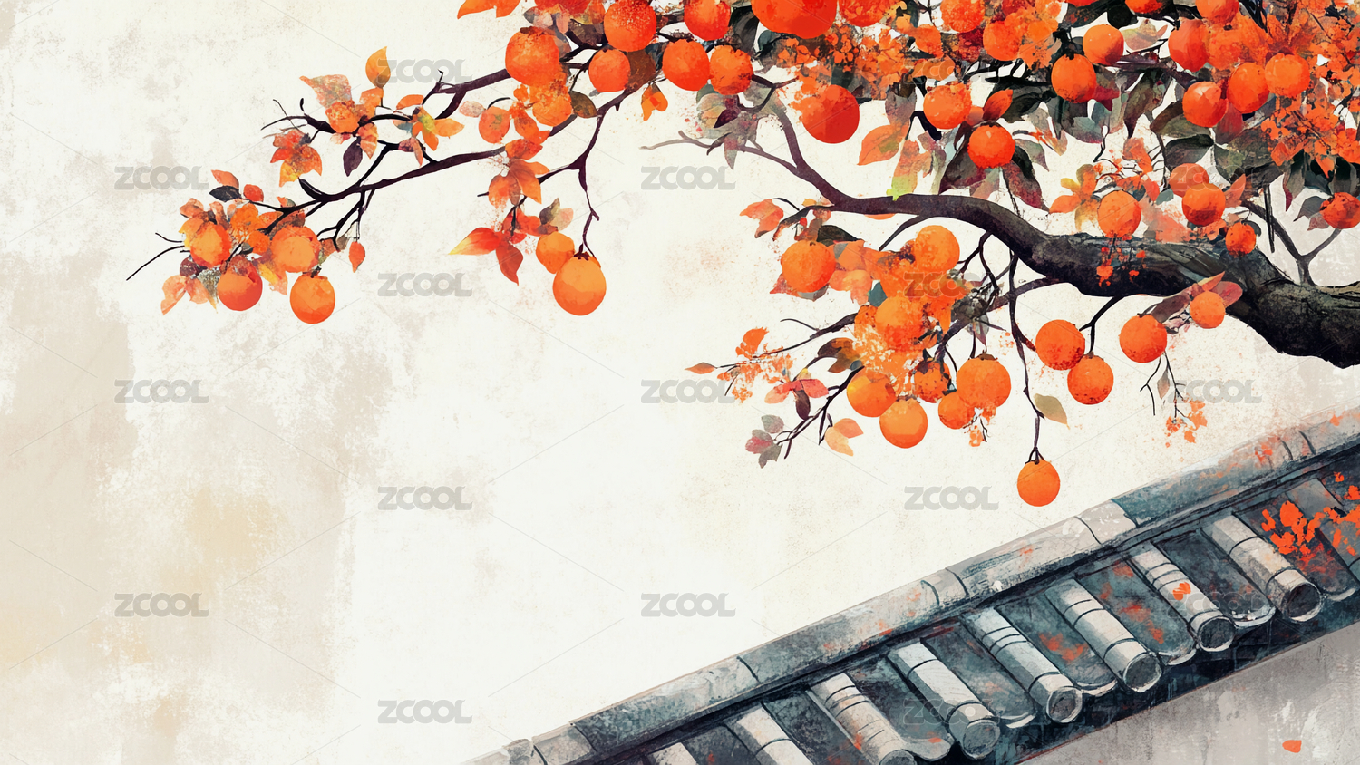 红梅盛开的背景下围炉煮茶中国风壁纸