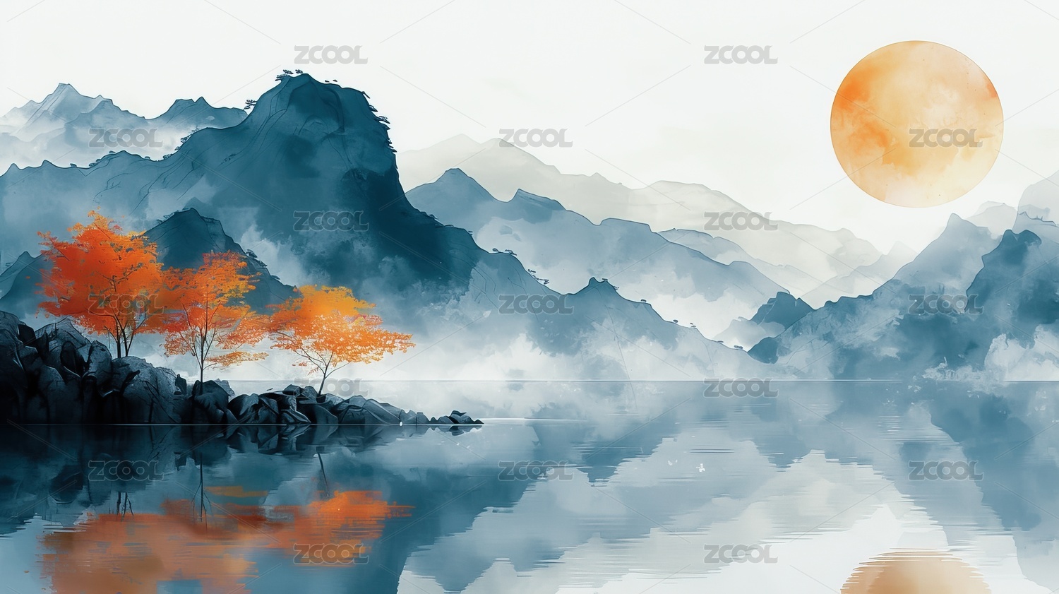 水墨风中国山水插画