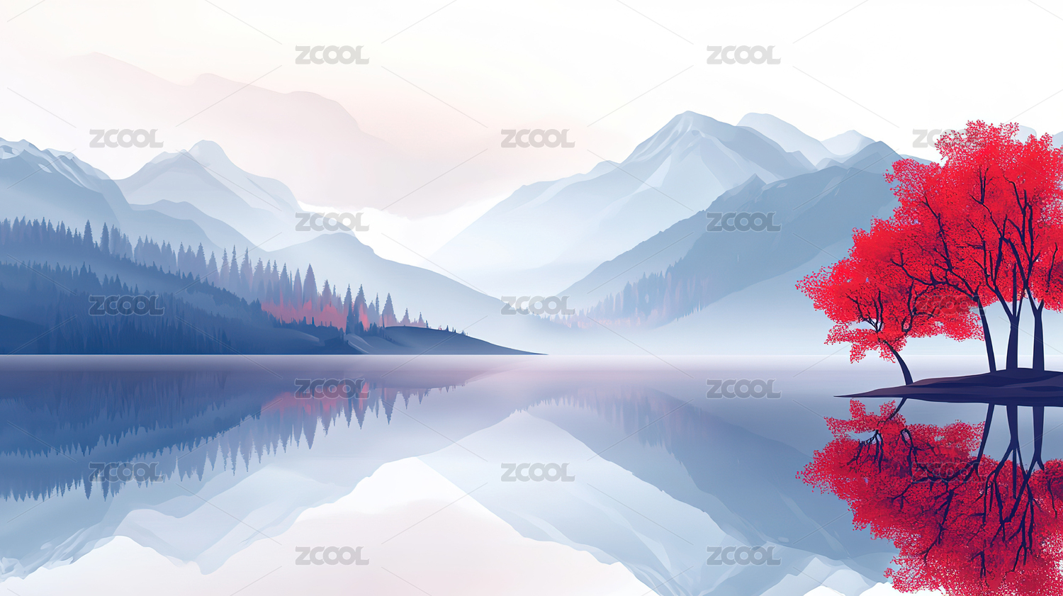 秋天的天空树林抽象水面背景