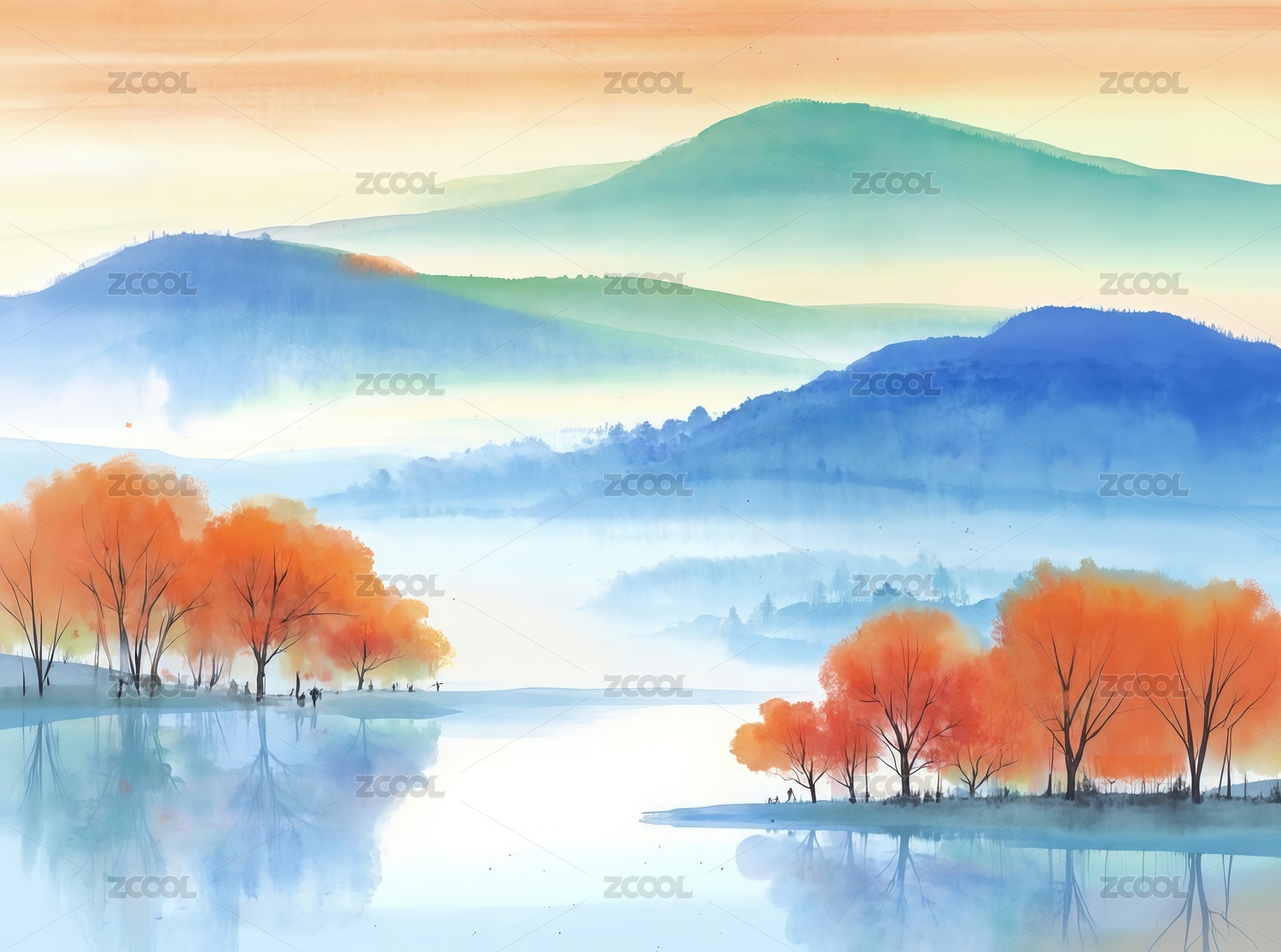 中国风山水画秋景