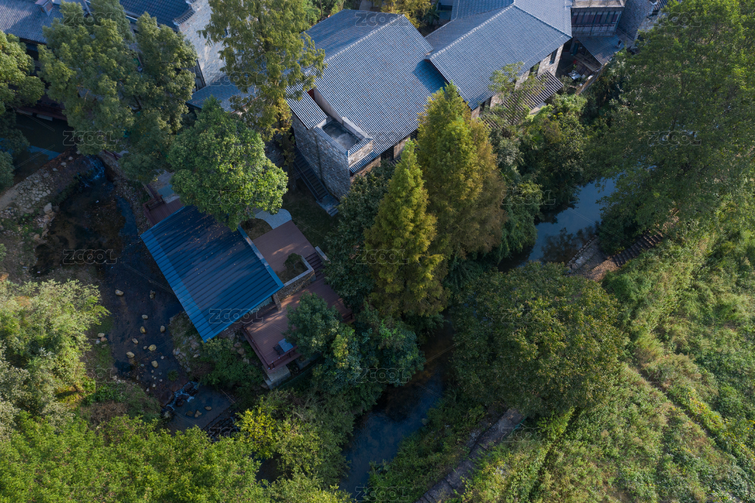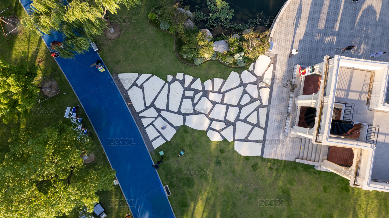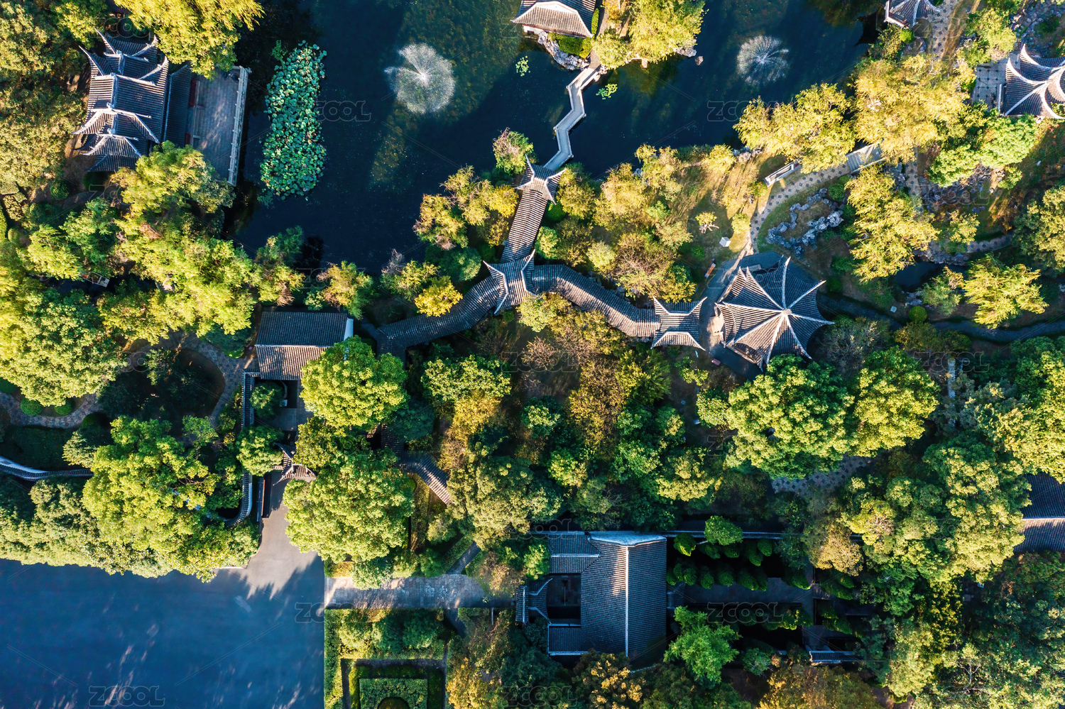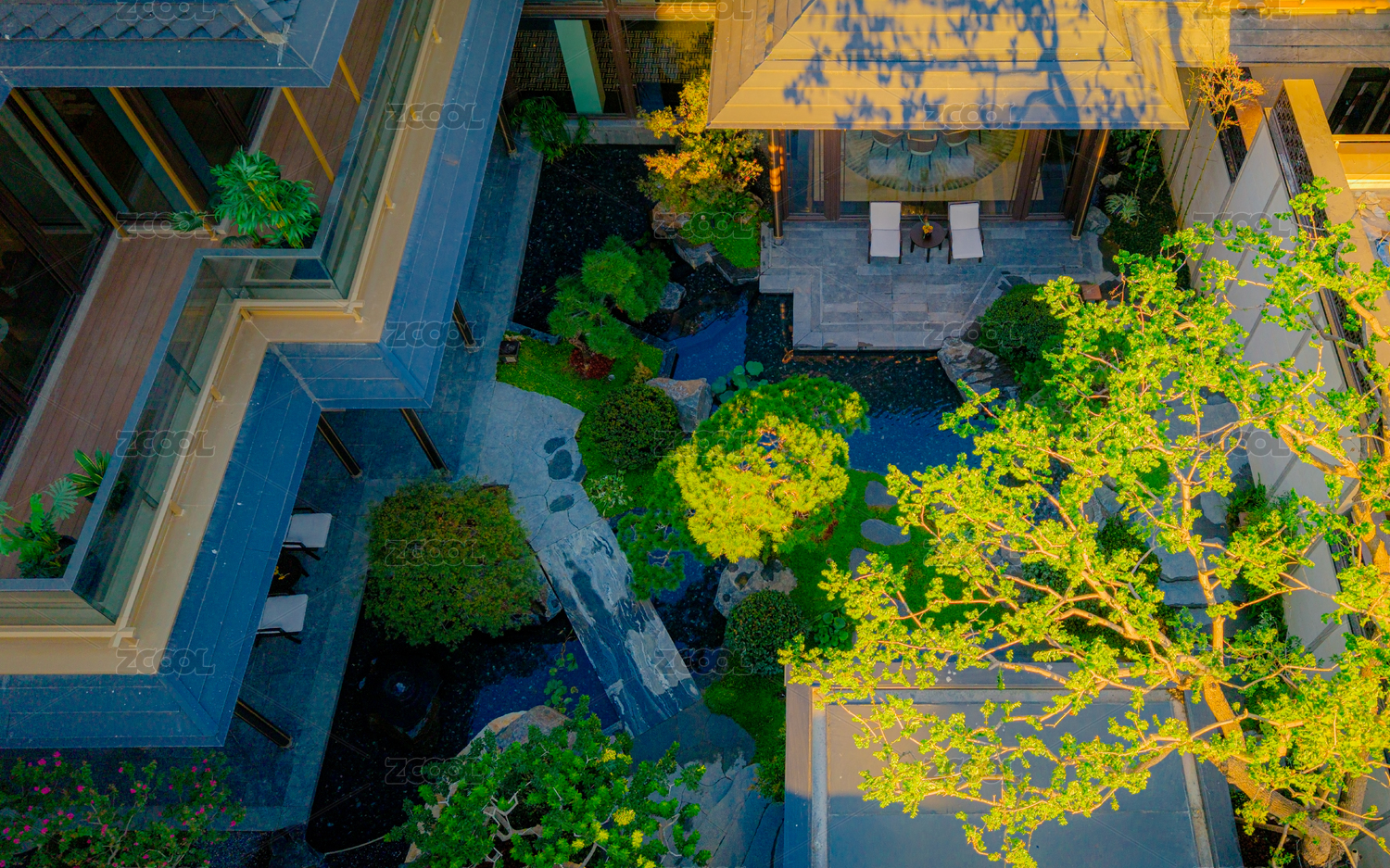 空中俯瞰现代中式园林景观设计