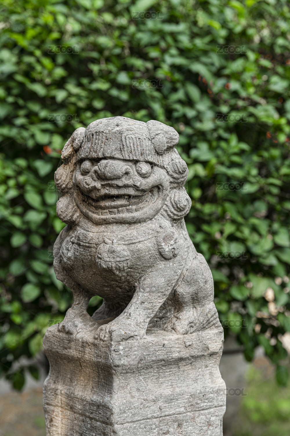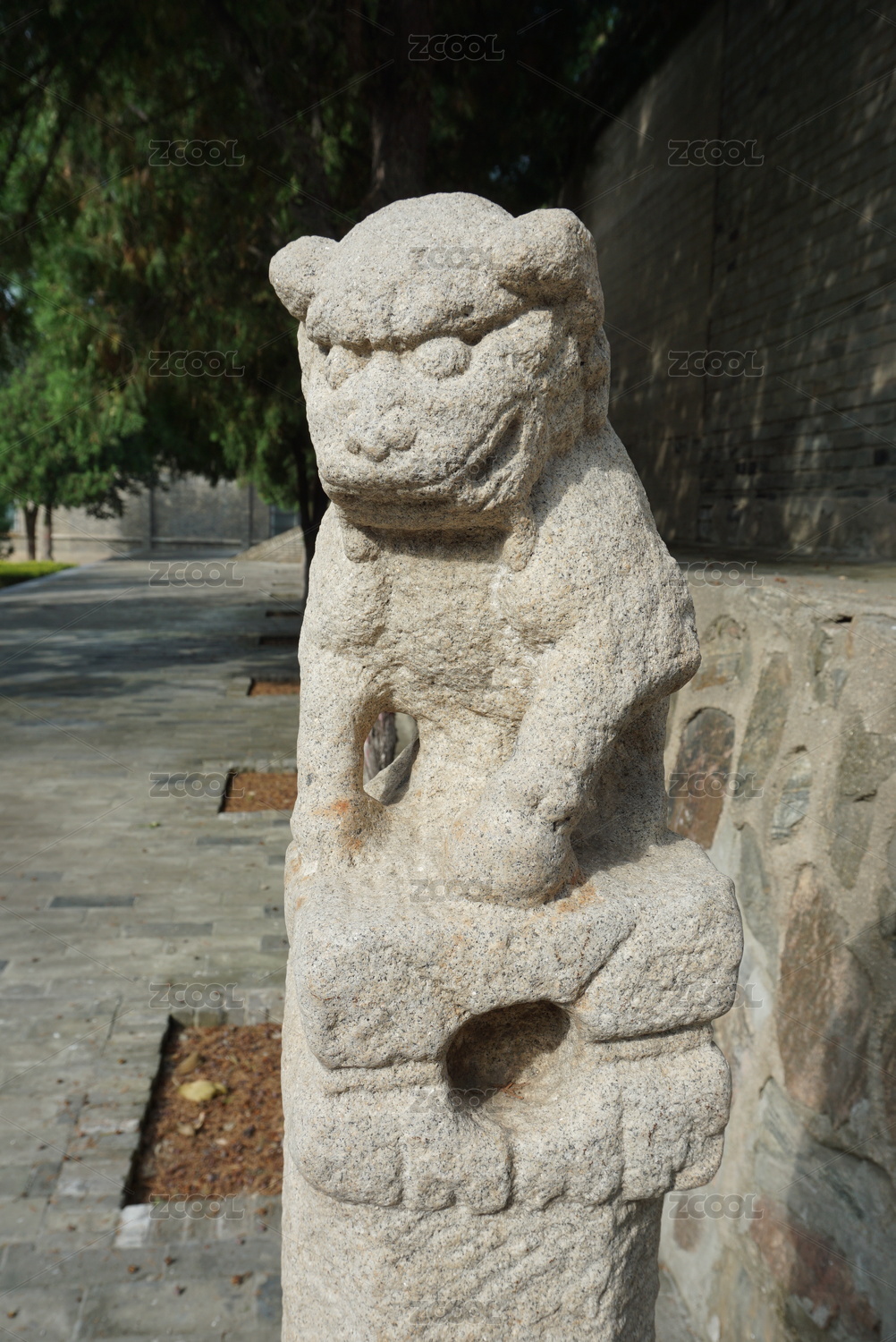 中国山西太原晋祠博物馆内的精美石刻石狮