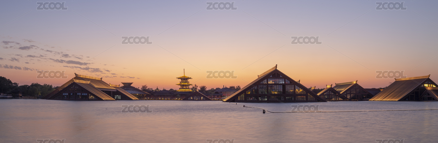 黄昏的上海松江广富林景区接片