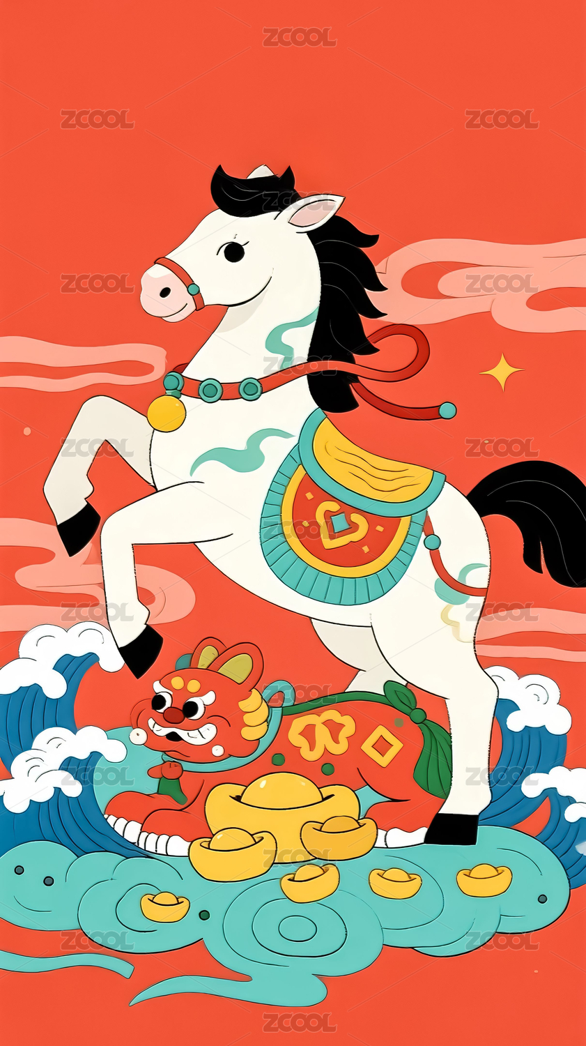 马上有钱马年元素插画