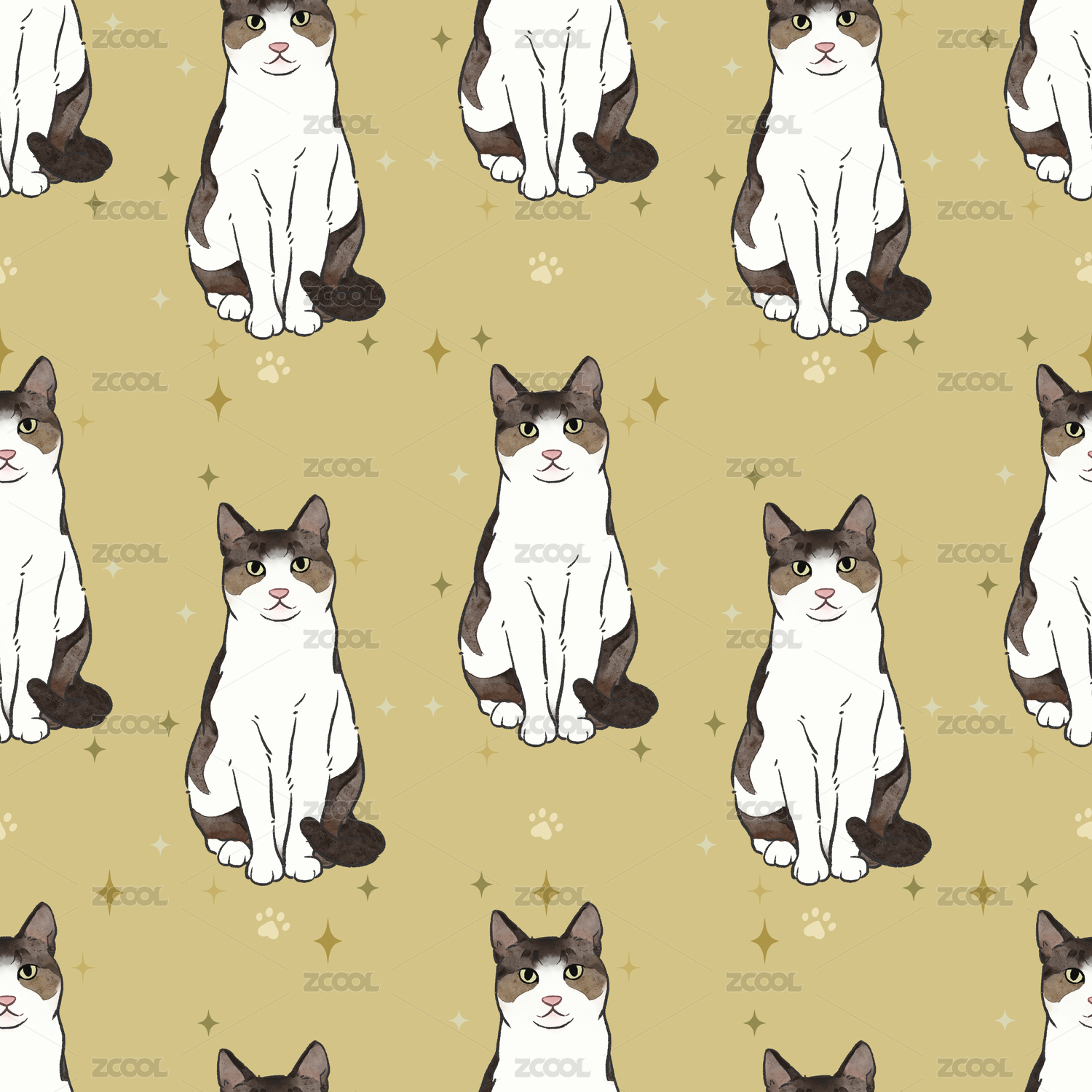 无缝,图案,印花,猫,插画,卡通,猫咪,背景,花纹,布料