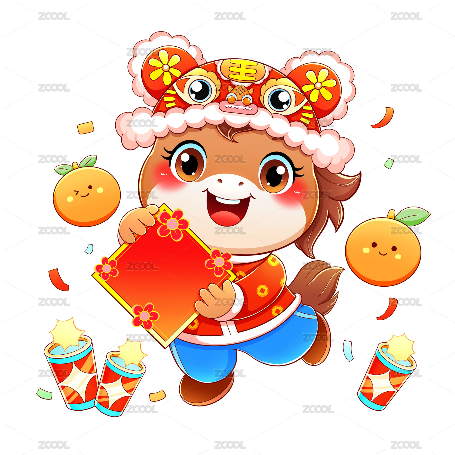 新年,春节,生肖,马年,马,小马,卡通马,马年插画,年画,红包