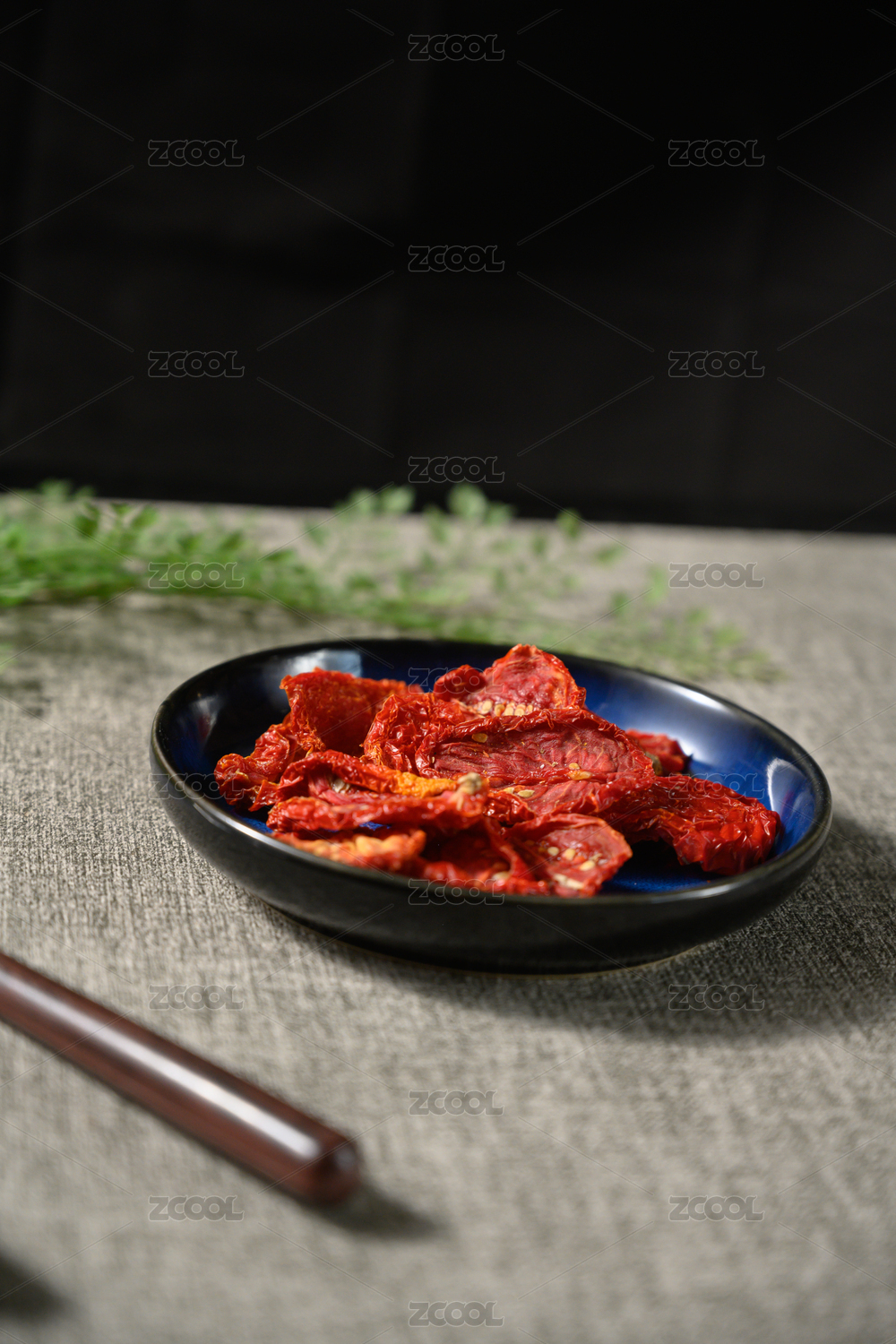 桌面上的盘子里的美味可口的西红柿干