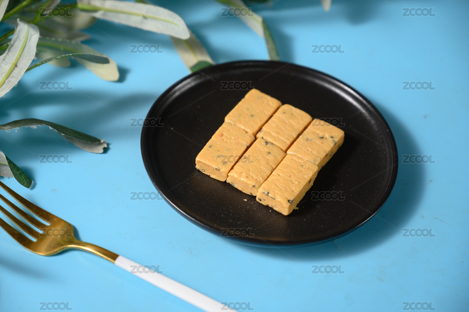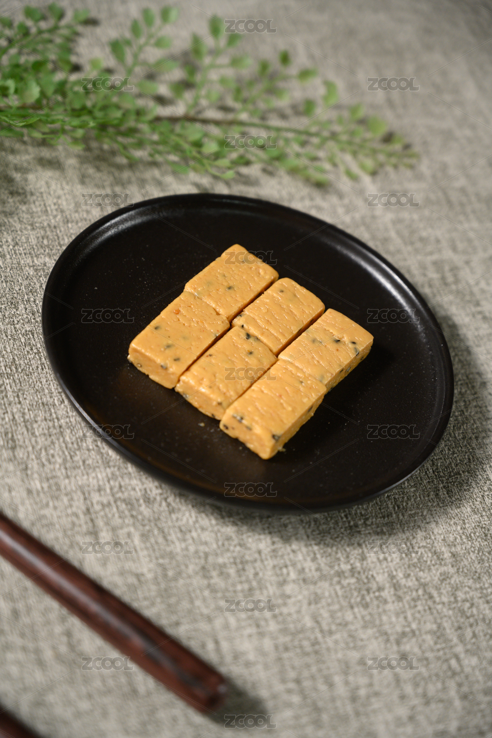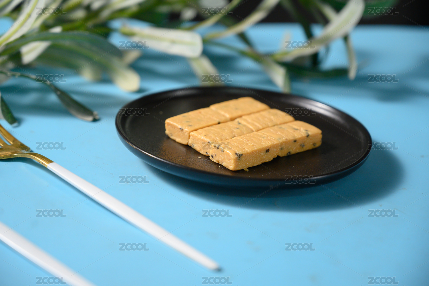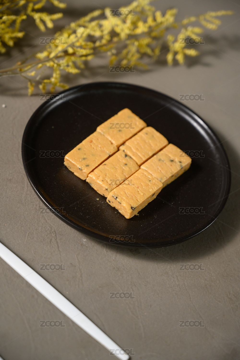 桌面上的盘子里的美味可口的夹心山楂奶糕