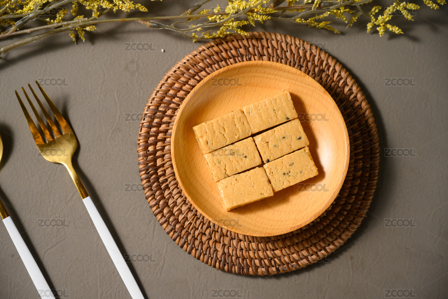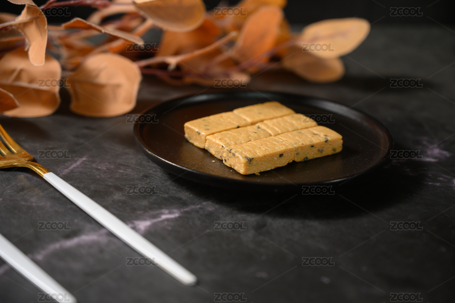 桌面上的盘子里的美味可口的夹心山楂奶糕