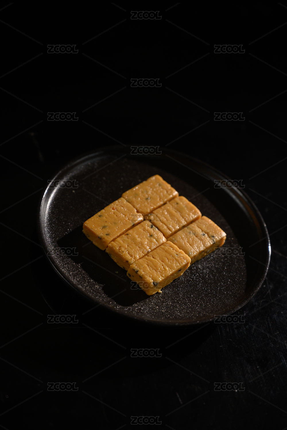 桌面上的盘子里的美味可口的夹心山楂奶糕