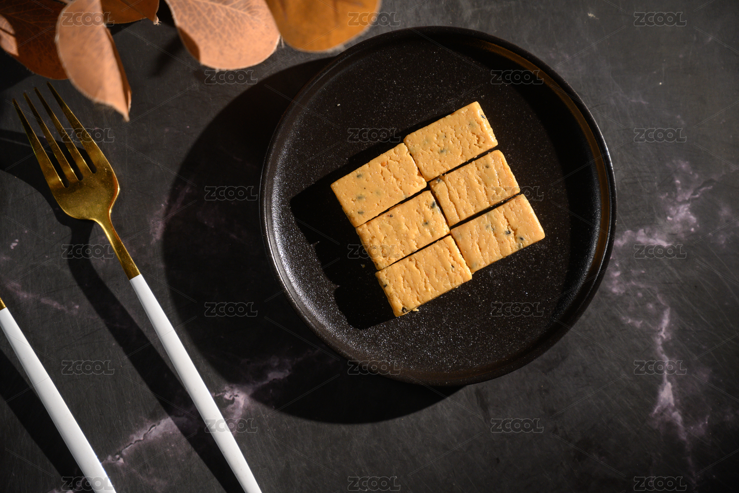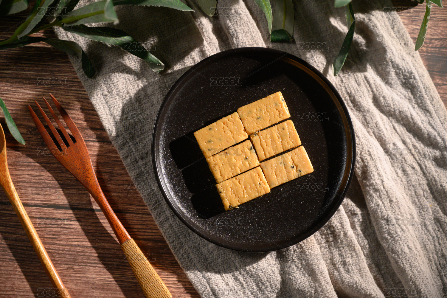 桌面上的盘子里的美味可口的夹心山楂奶糕